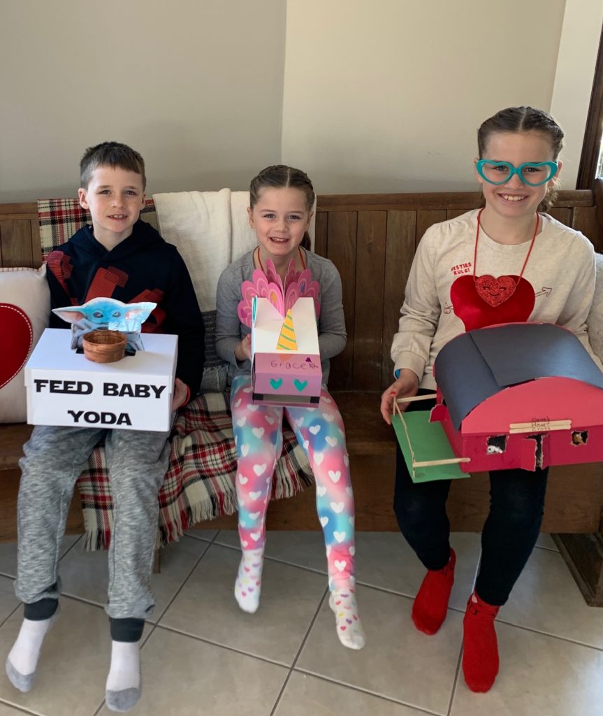 Happy Valentine’s Day! I love this little holiday. Today Tess and I are heading into Grace’s classroom for some Valentine’s games and then tomorrow we’ll celebrate in Tessa’s class. One of our favorite parts of Valentine’s Day is making their Valentine boxes. Here’s a few throwbacks….