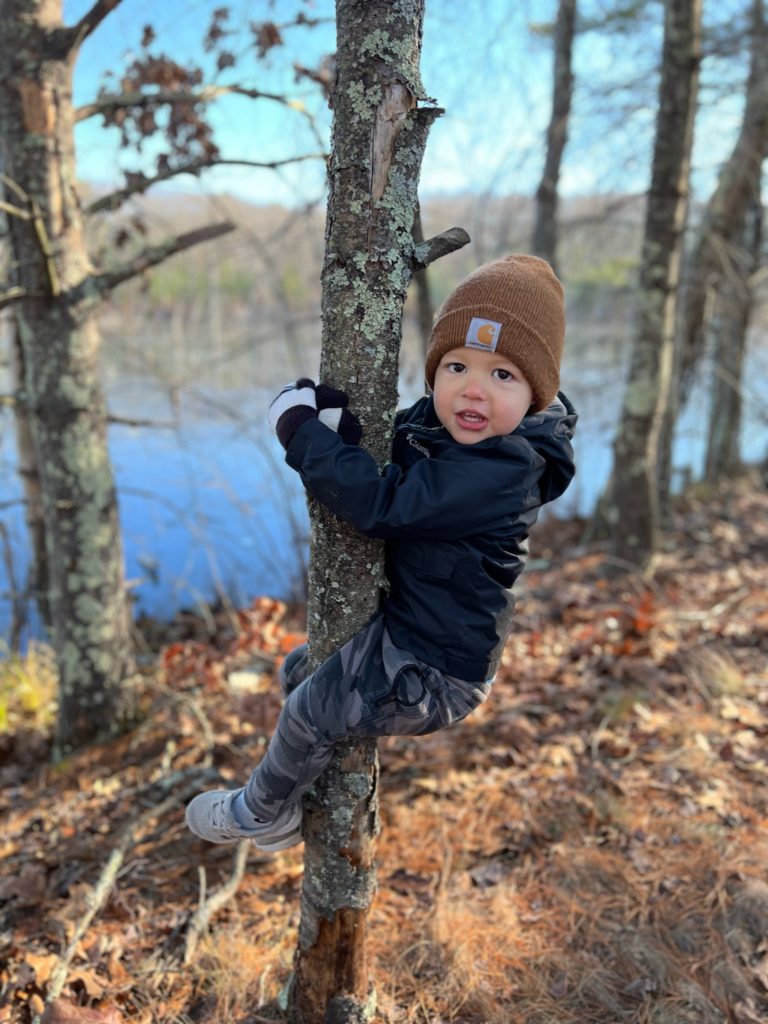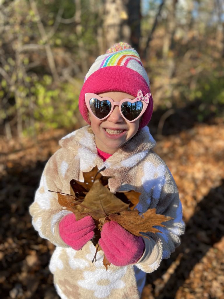Tess likes to collect things. She hoards rocks, sticks, pinecones, cardboard boxes, and leaves. Especially leaves. She could barely contain herself on this woodsy walk.