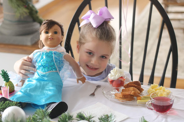At home, she chose a tea party with me and her new doll.