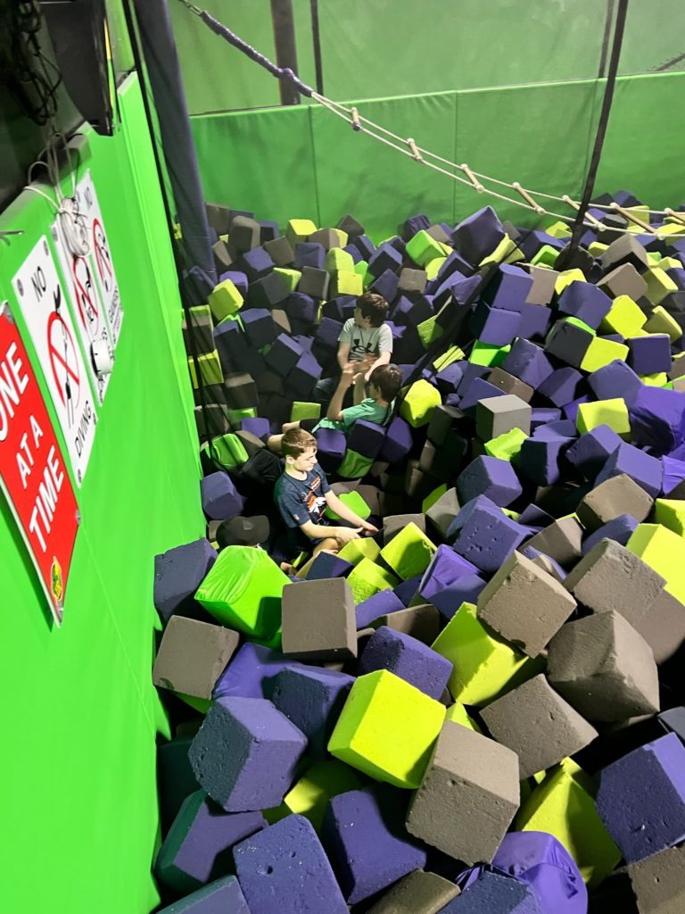 At one point we realized we hadn’t seen the boys for awhile, so Ben went looking for them. He couldn’t find them anywhere, but then we noticed a few blocks moving in the foam pit where we had seen them last. Turns out they dug to the bottom and decided to just hang out down there for a bit. 🤦🏽♀️