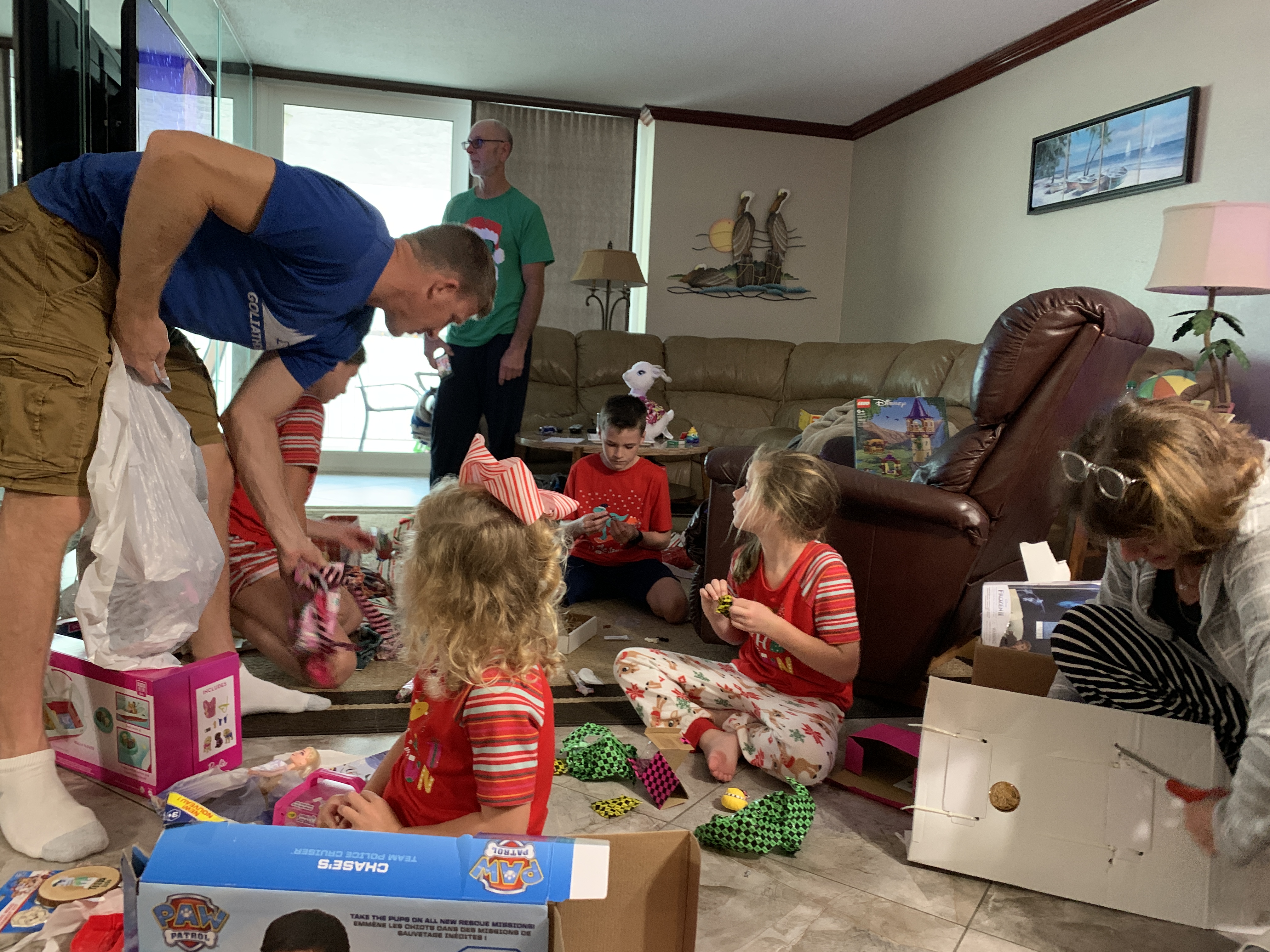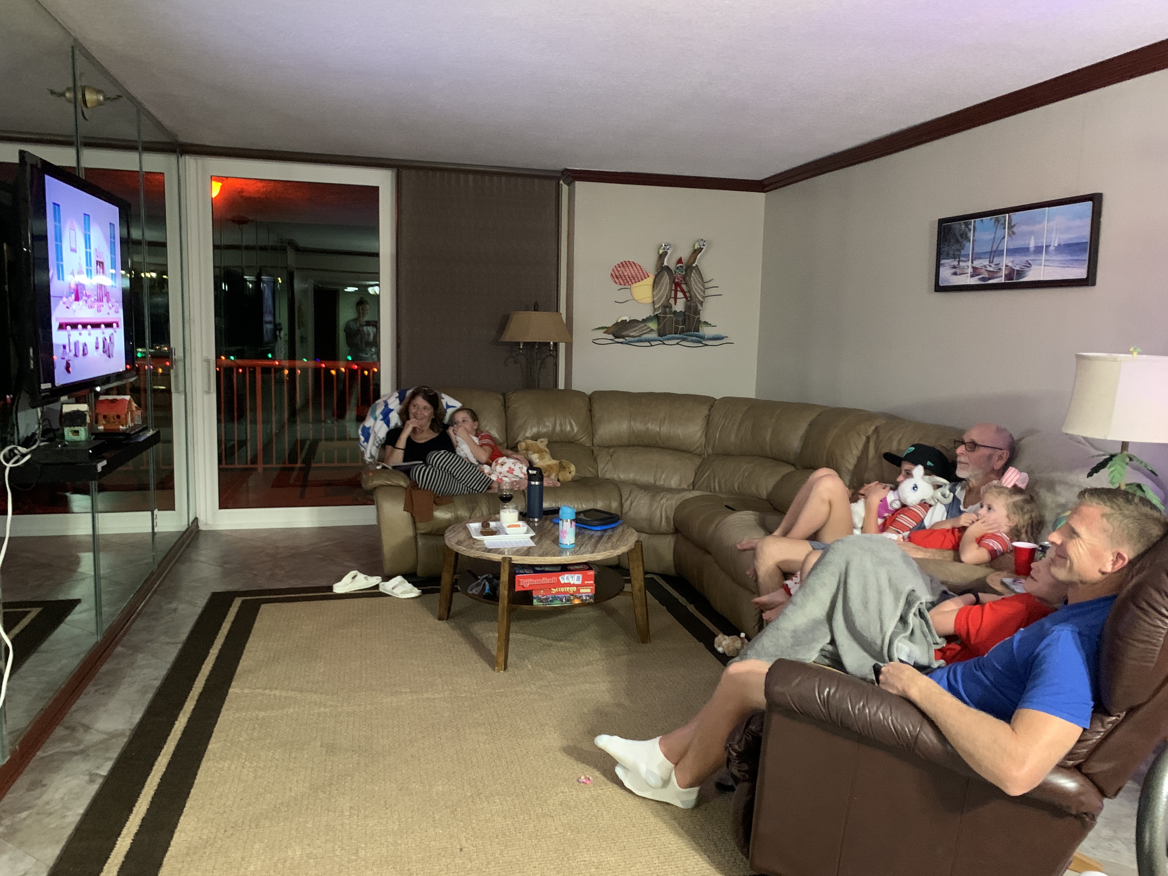 After Ben, my Dad, and a couple other guys cleaned up what they could and the kids all got cleaned up and in their Christmas pj’s (Tessa slipped in the parking lot and was soaking wet and sobbing) we all settled down and watched Rudolph. It was a memorable evening.