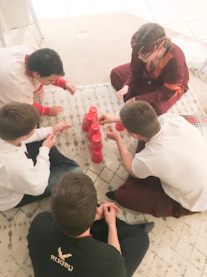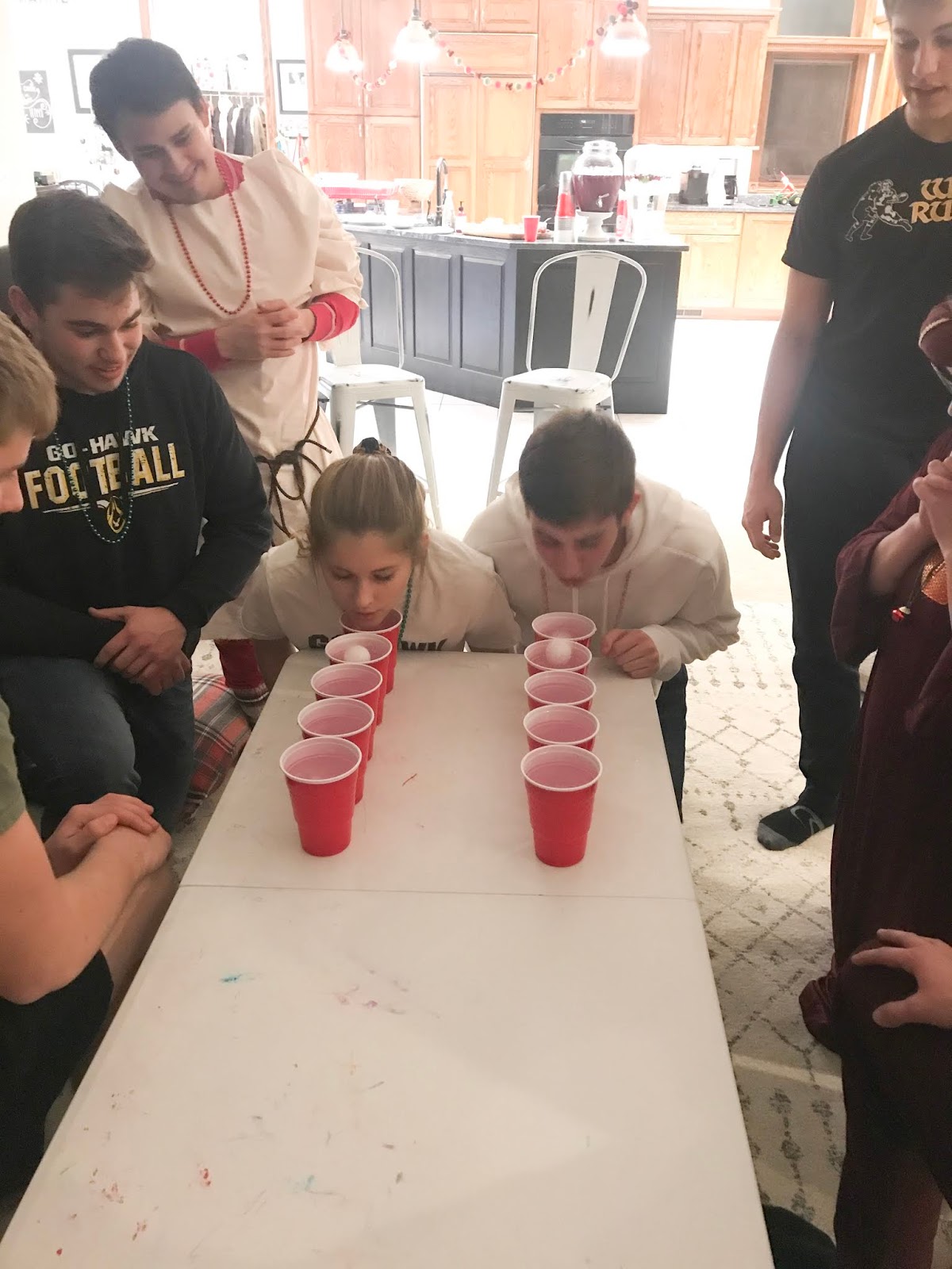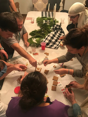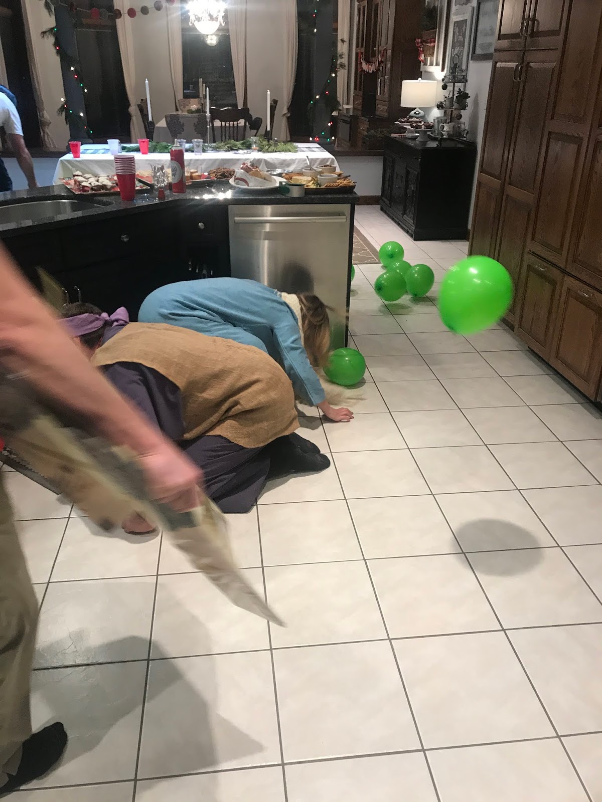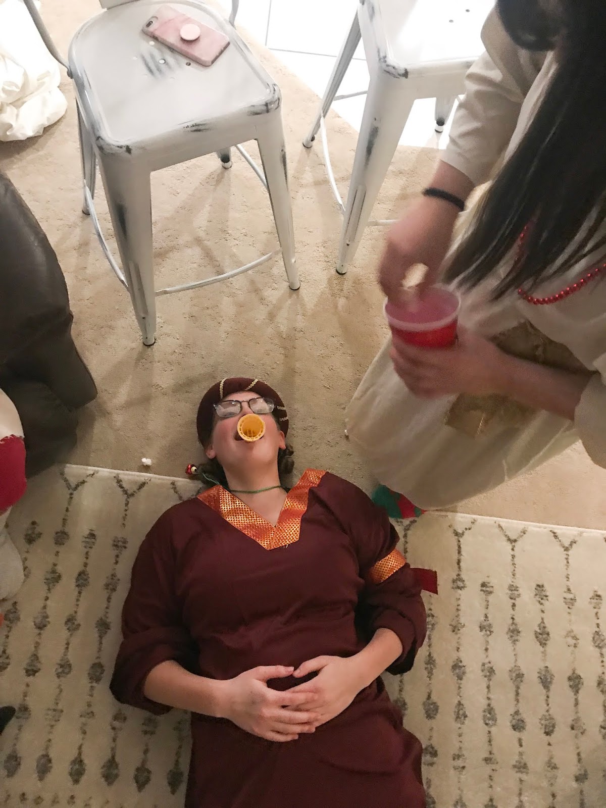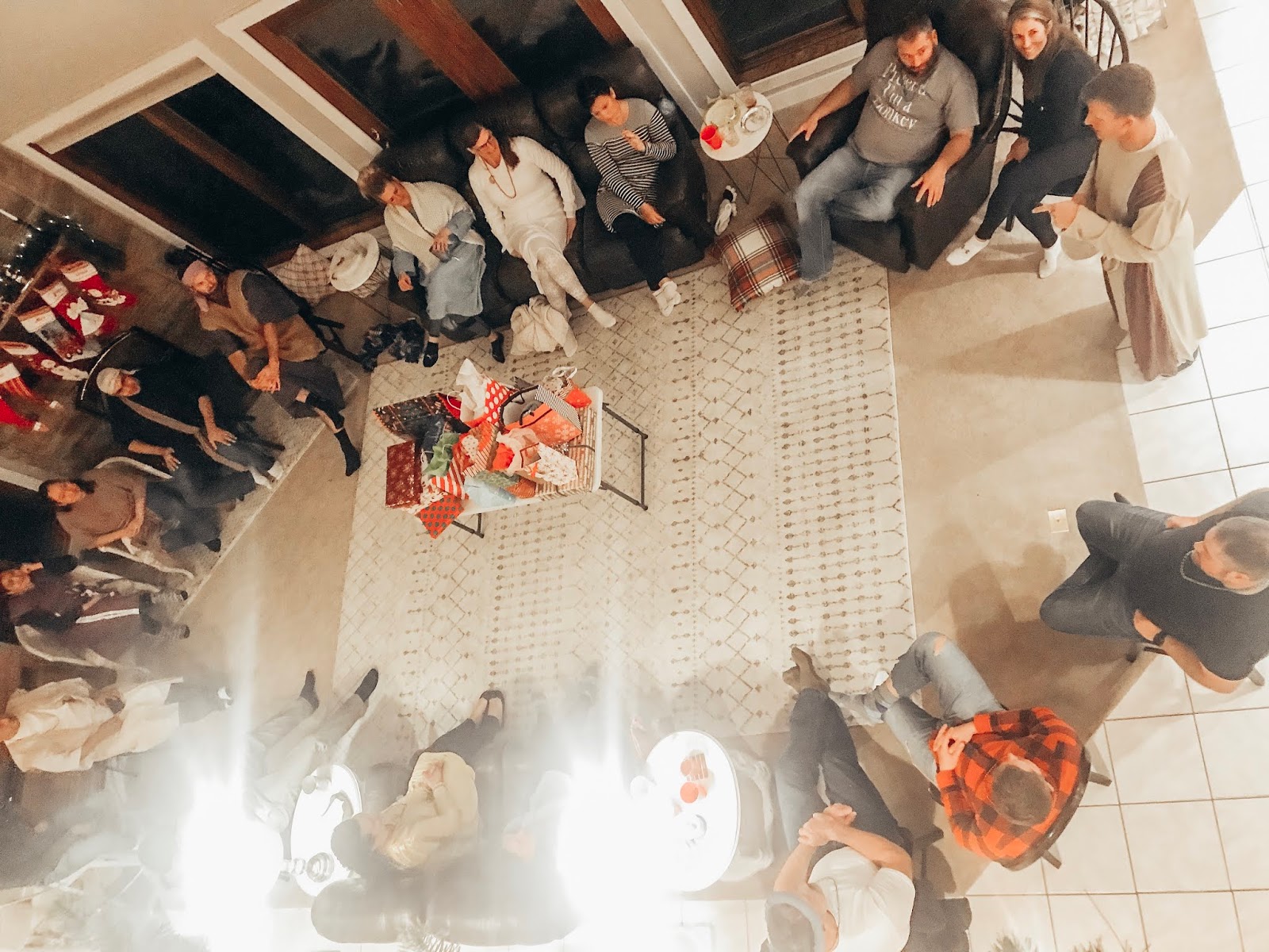 Party #2 with the “younger” people. Apparently three of them missed the memo to wear white. Wise Man Carson with his golden potato, frankincense oil, and picture of Mur{ray} was probably the favorite. Although Jack as baby Jesus and Clint as a manger were a close second. Actually, everyone did great with their costumes!
