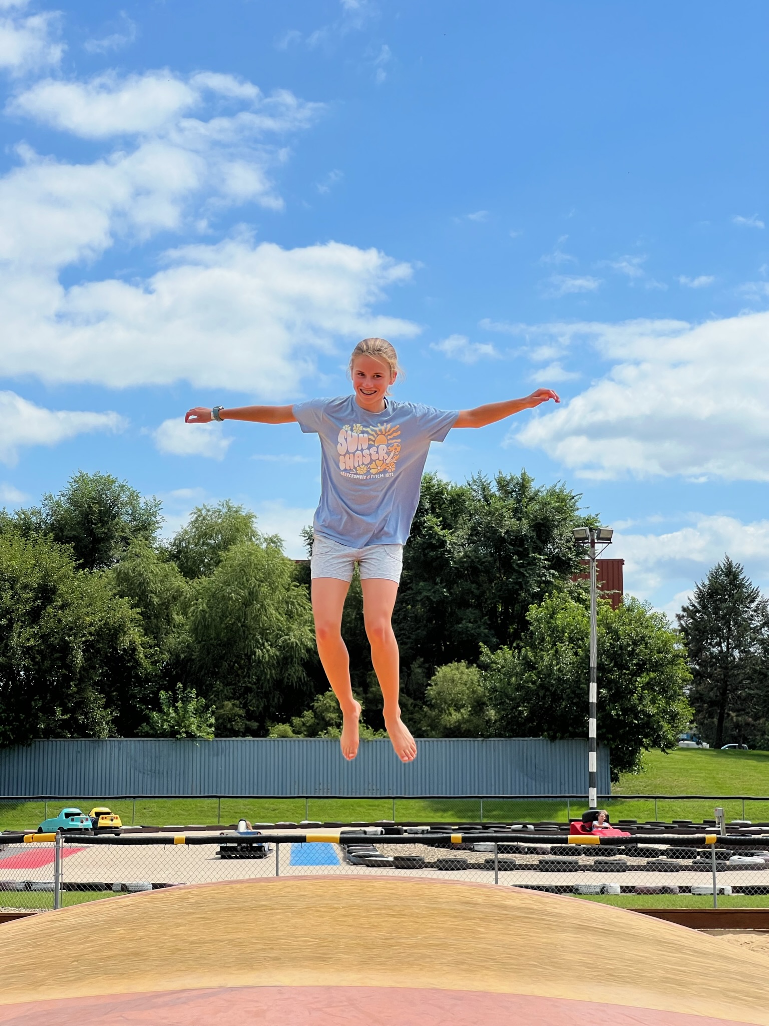 It was a beautiful day, and we arrived at our destination early so there weren’t many people there. A jumping pillow is always more fun when it’s not packed with children.