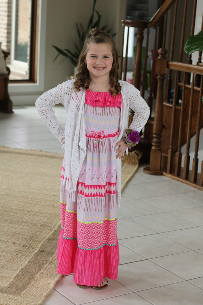 (Wild child thought she’d do her make up too. She was also pretty salty all day and night because she “just loved Gracie’s dress so much and wanted to wear it!”)
