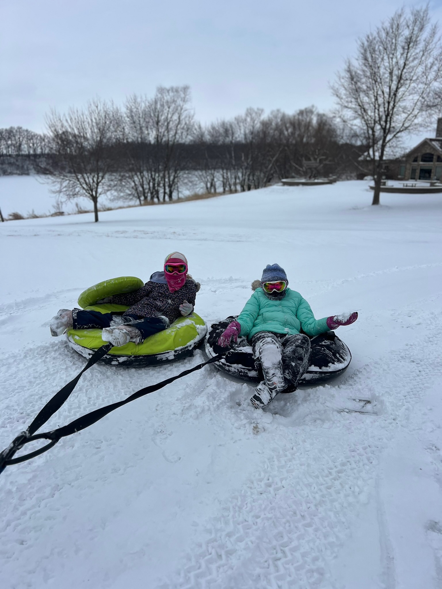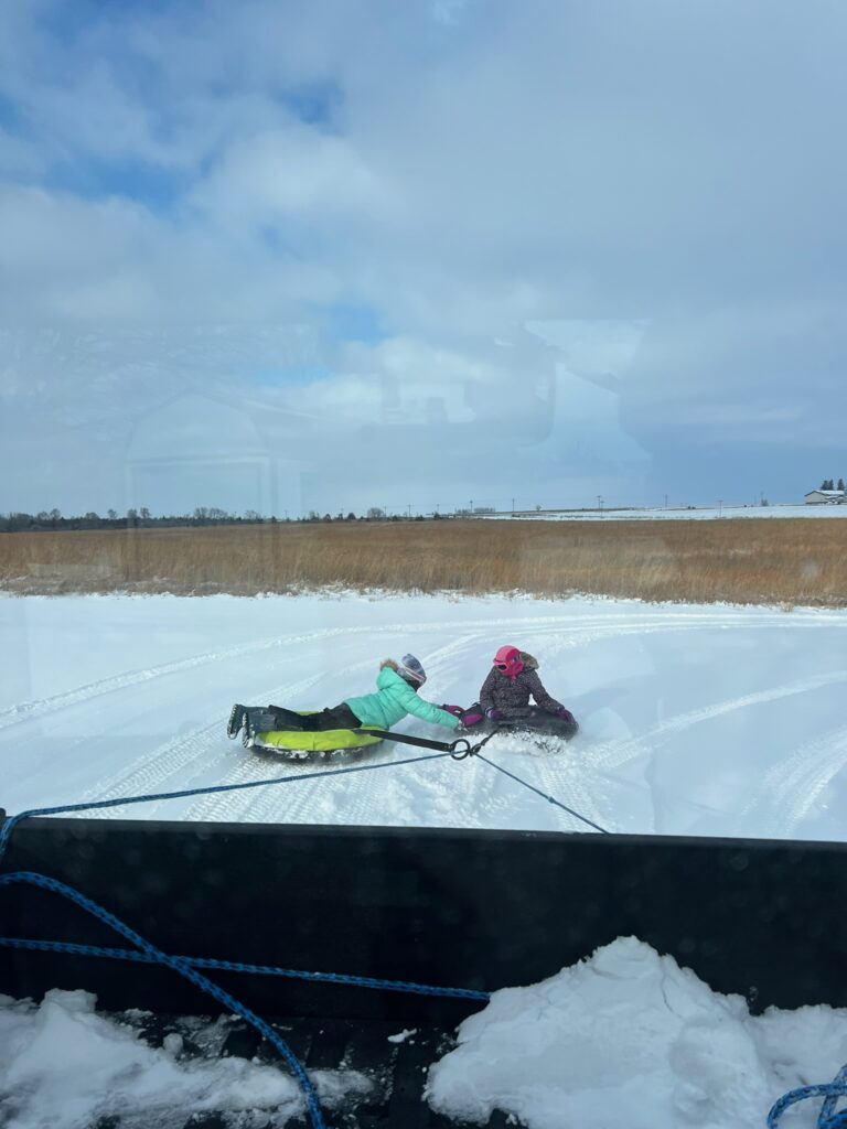 The next day we woke up to a beautiful snowy morning. We relaxed by the fire, and then headed outside to finally get in some snow tubing.