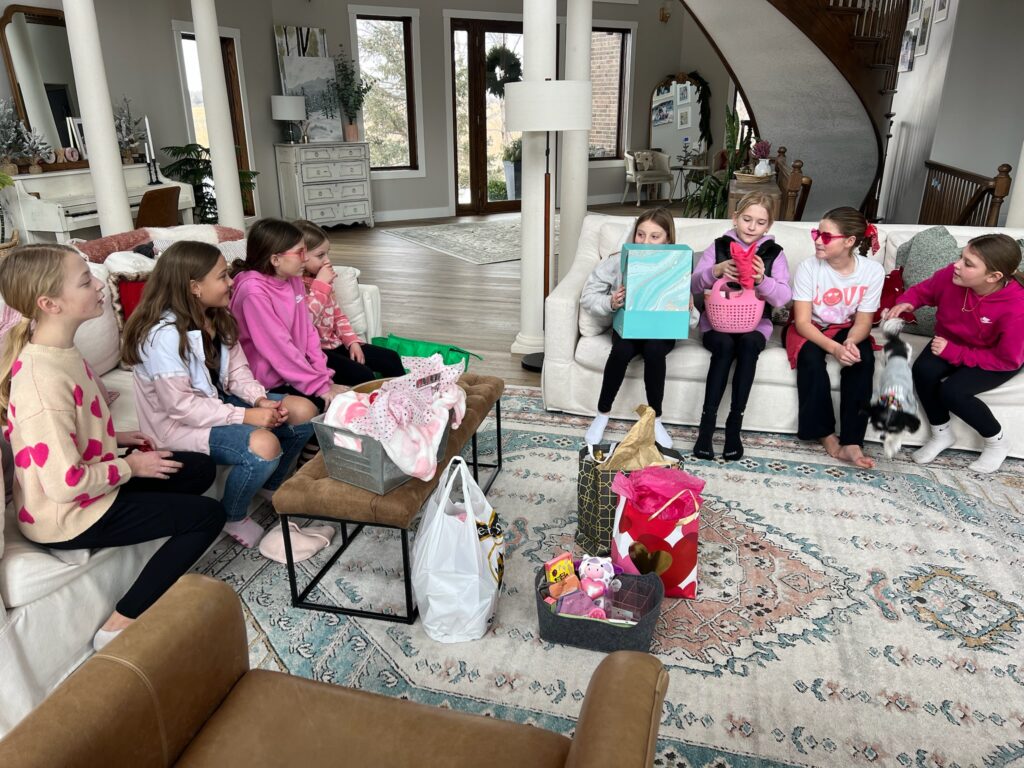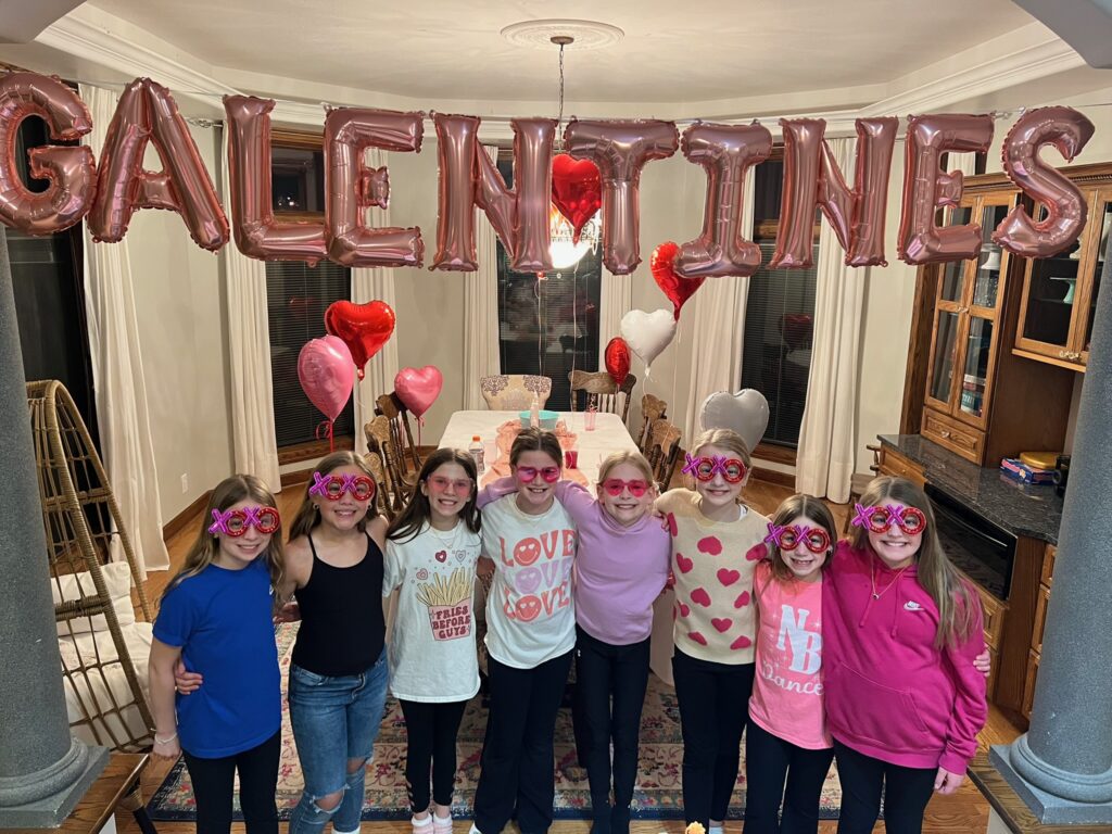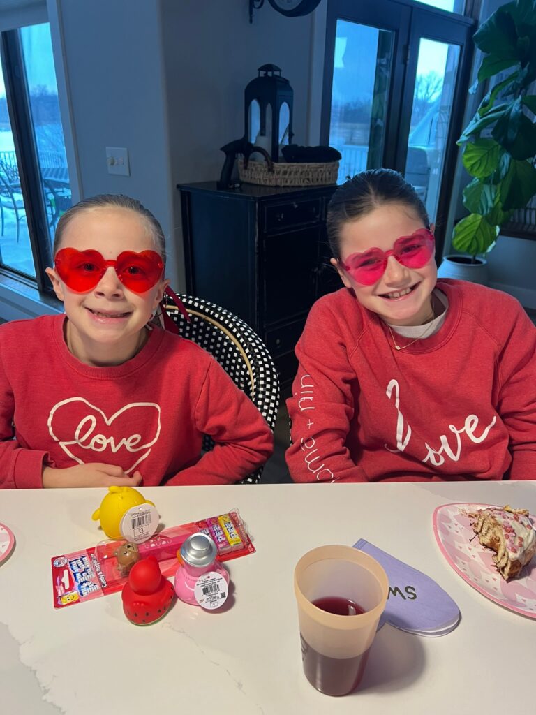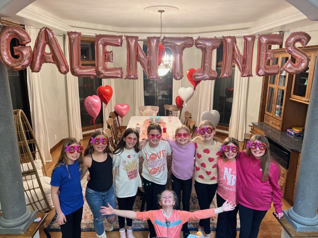 Grace and her friends decided to make Valentine’s baskets for each other, so we had a little Galentine’s party after school so they could exchange them. It was pretty sweet!