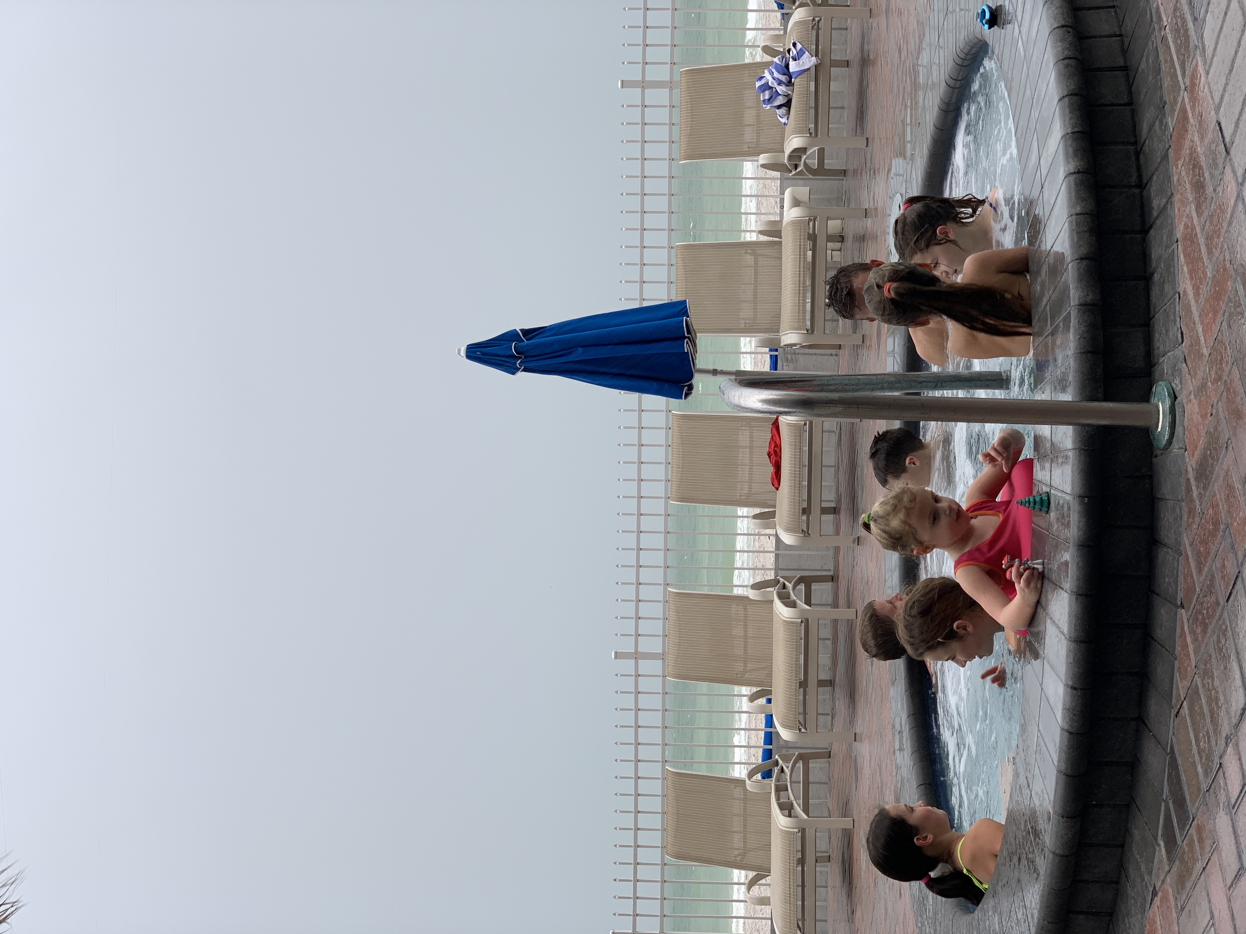 Our first day was our only rainy day, which was ok with me because I needed to unpack and get organized anyway. But that didn’t stop the kids from finding their buddies and checking out the beach, pool, and hot tub. In the rain.