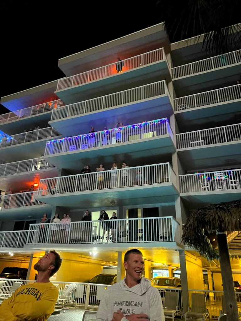 The whole building (and surrounding buildings) enjoying Josh’s fireworks display.