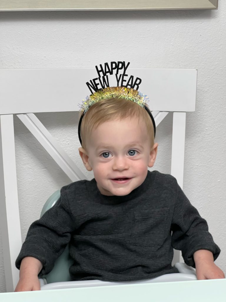 Aunt Teresa NOT enjoying the noise makers.