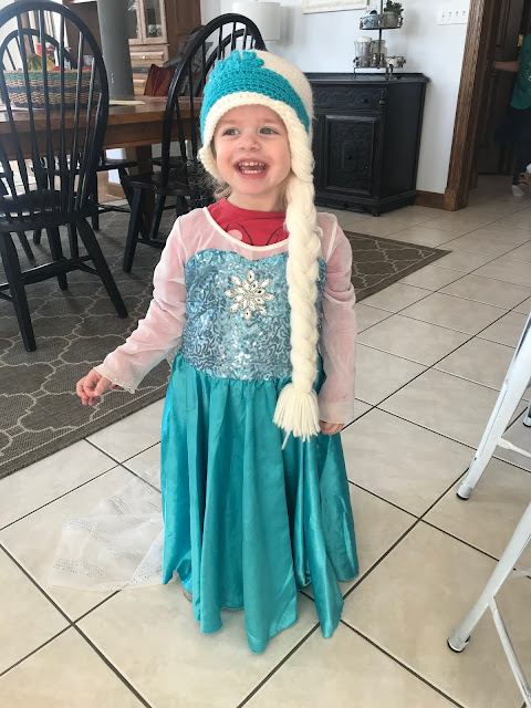 Tess was all about being Elsa this week. She has big cloppy shoes on under that dress too, and looked so big walking all over the house in this getup.