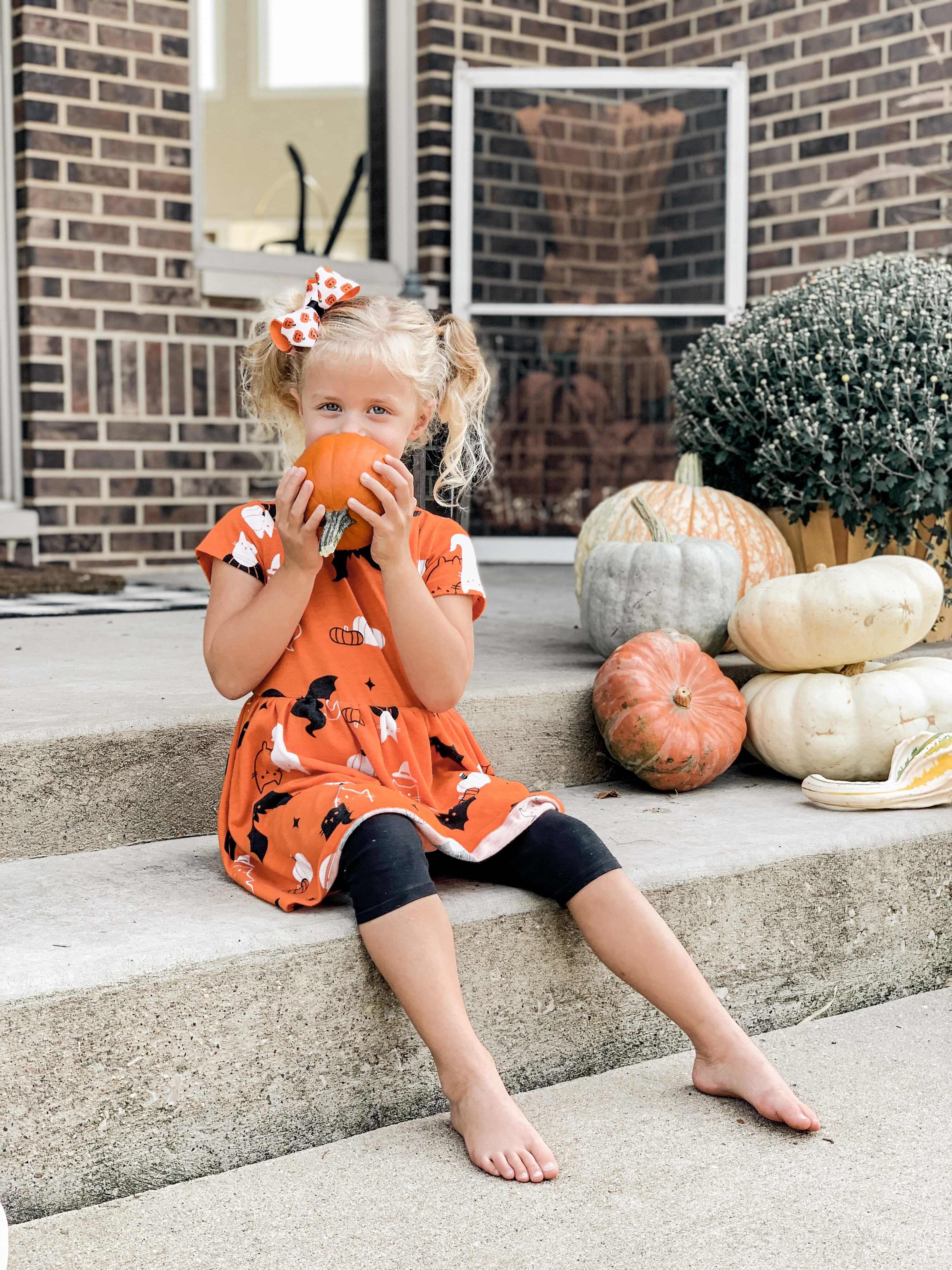 Fancy Nancy with her streamer bike! Love Tessa’s dress too, I bought Grayson his first pumpkin-themed outfit there π