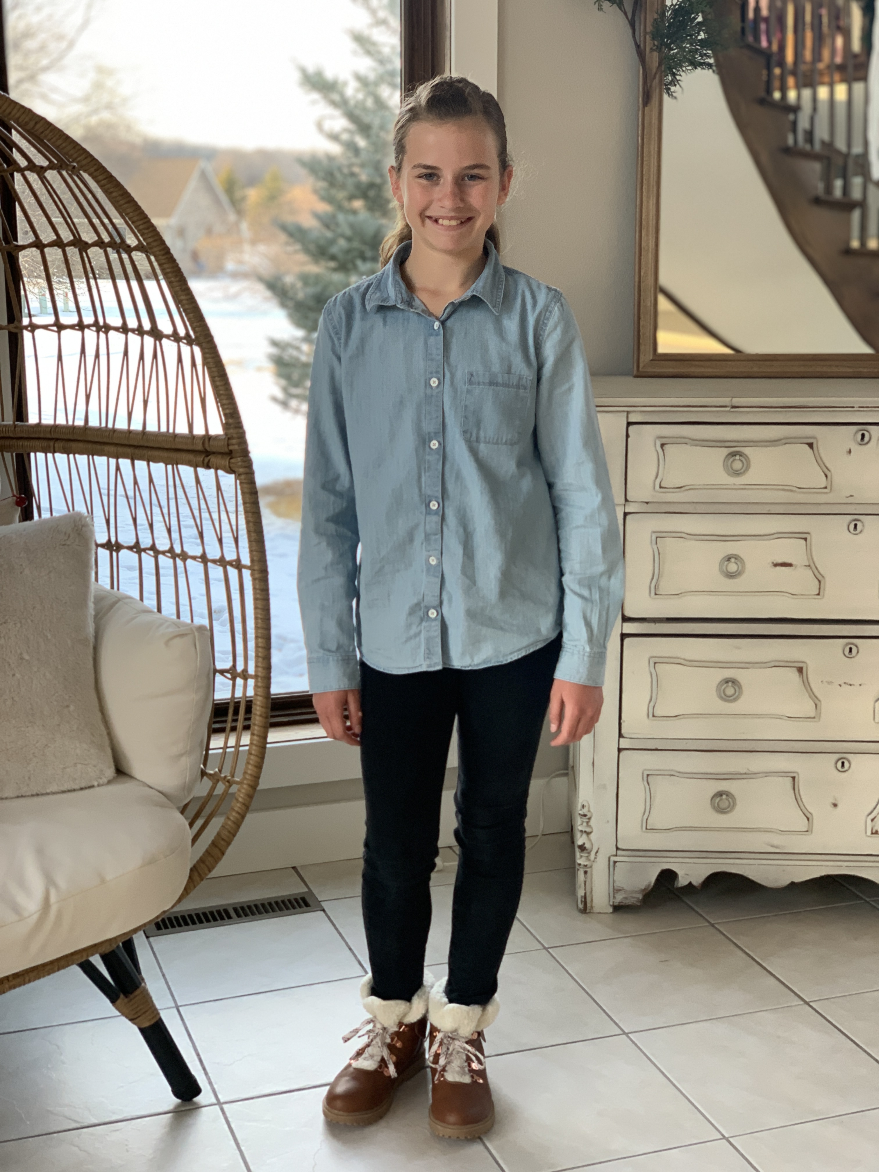 I’ve realized my kids are basically living the celebrity life when it comes to getting ready for the day….their cute clothes are picked out for them, their hair is done for them, their breakfast and lunch are made for them, and their “assistant” makes sure everything they need is in their bag. Must be nice. All that to say, Claire absolutely loves these boots.