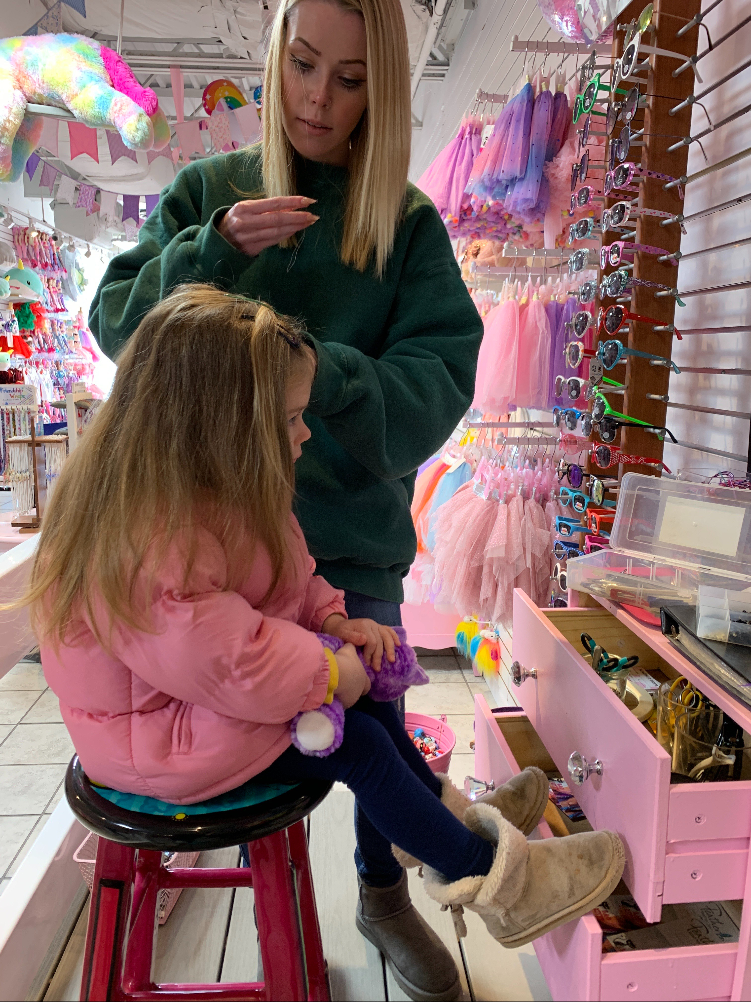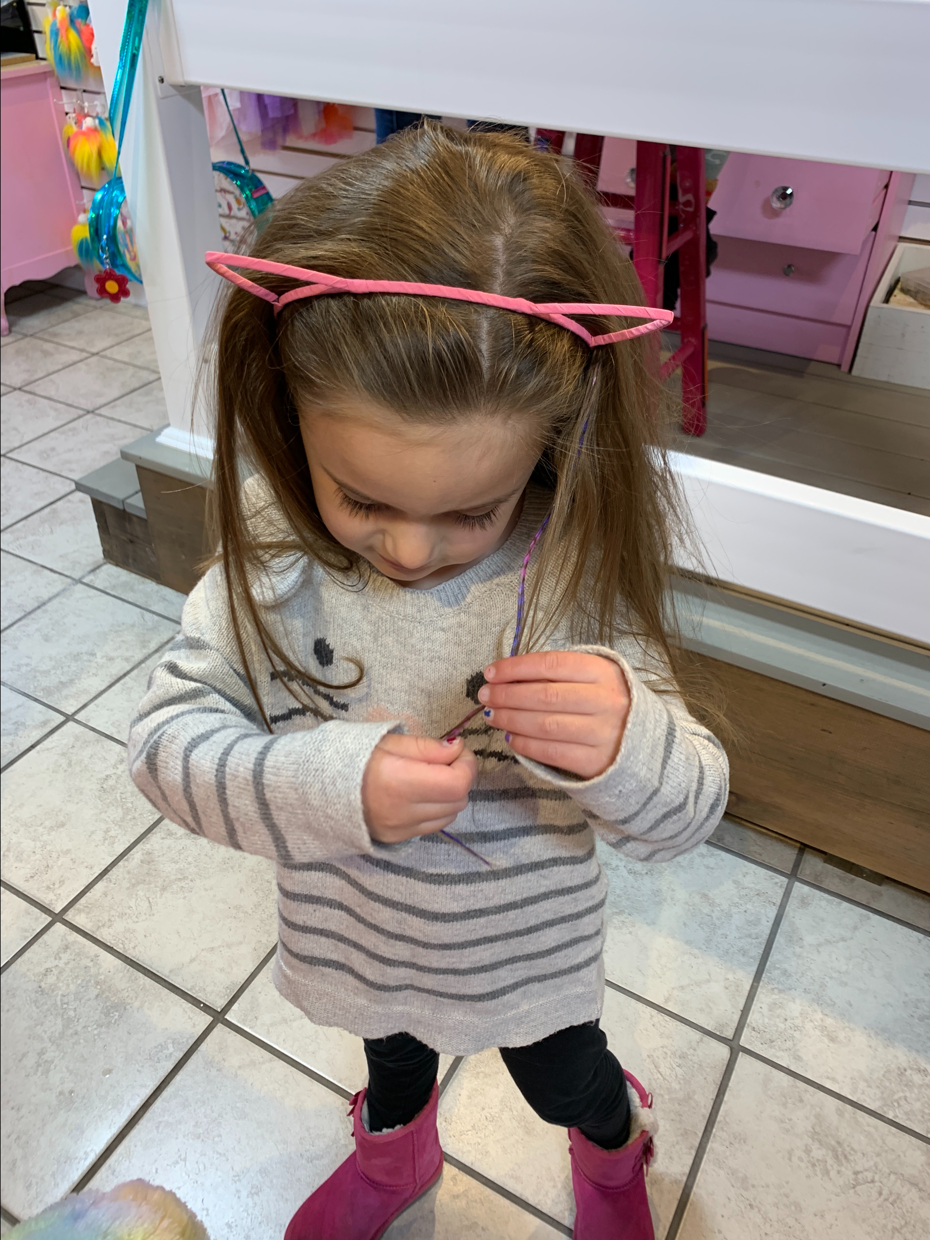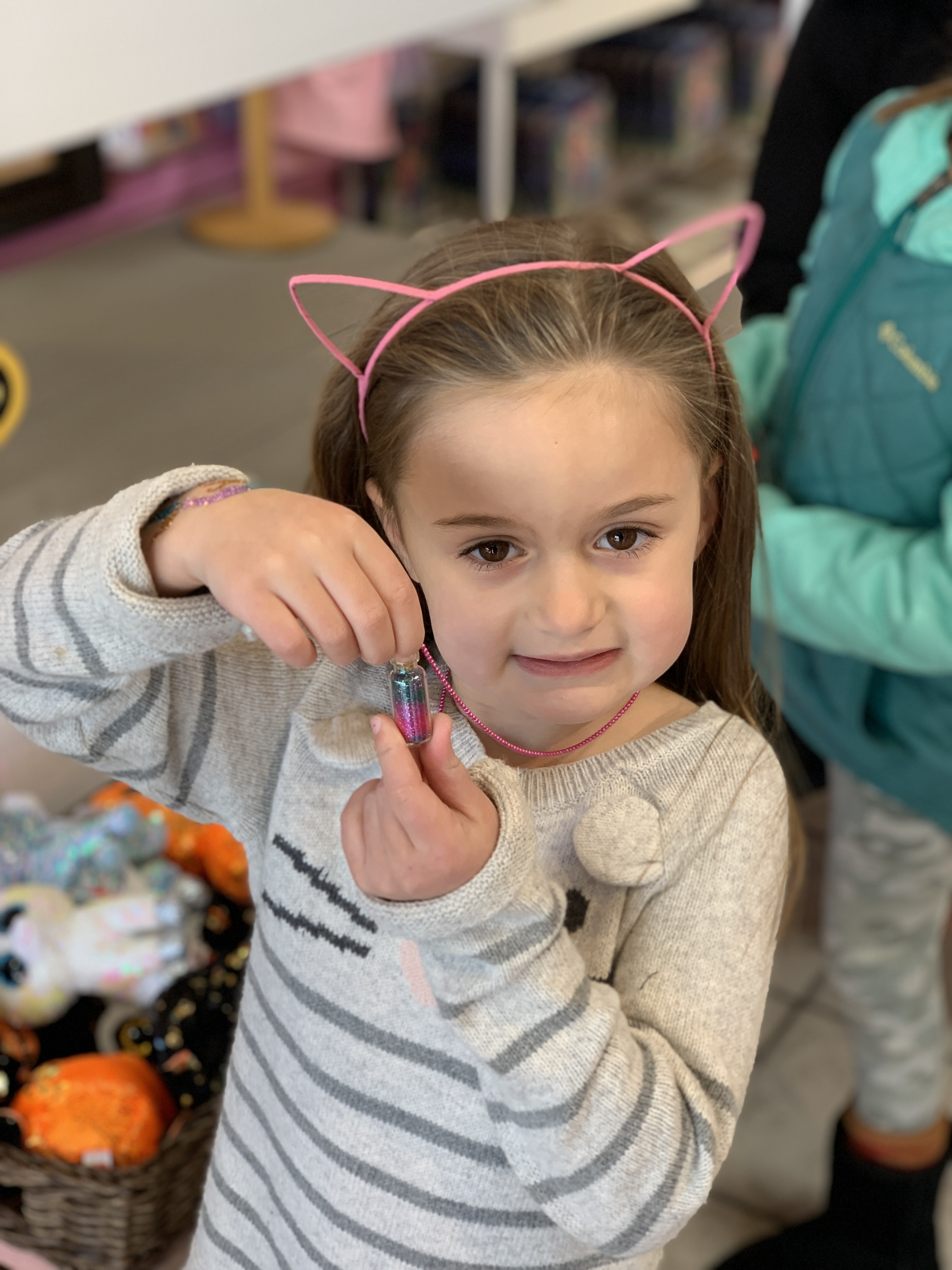 Stuffed animals, glittery tattoos, kitty ears, sparkly necklaces and fancy feather hair pieces with your cousins….what more could want when you’re 6?