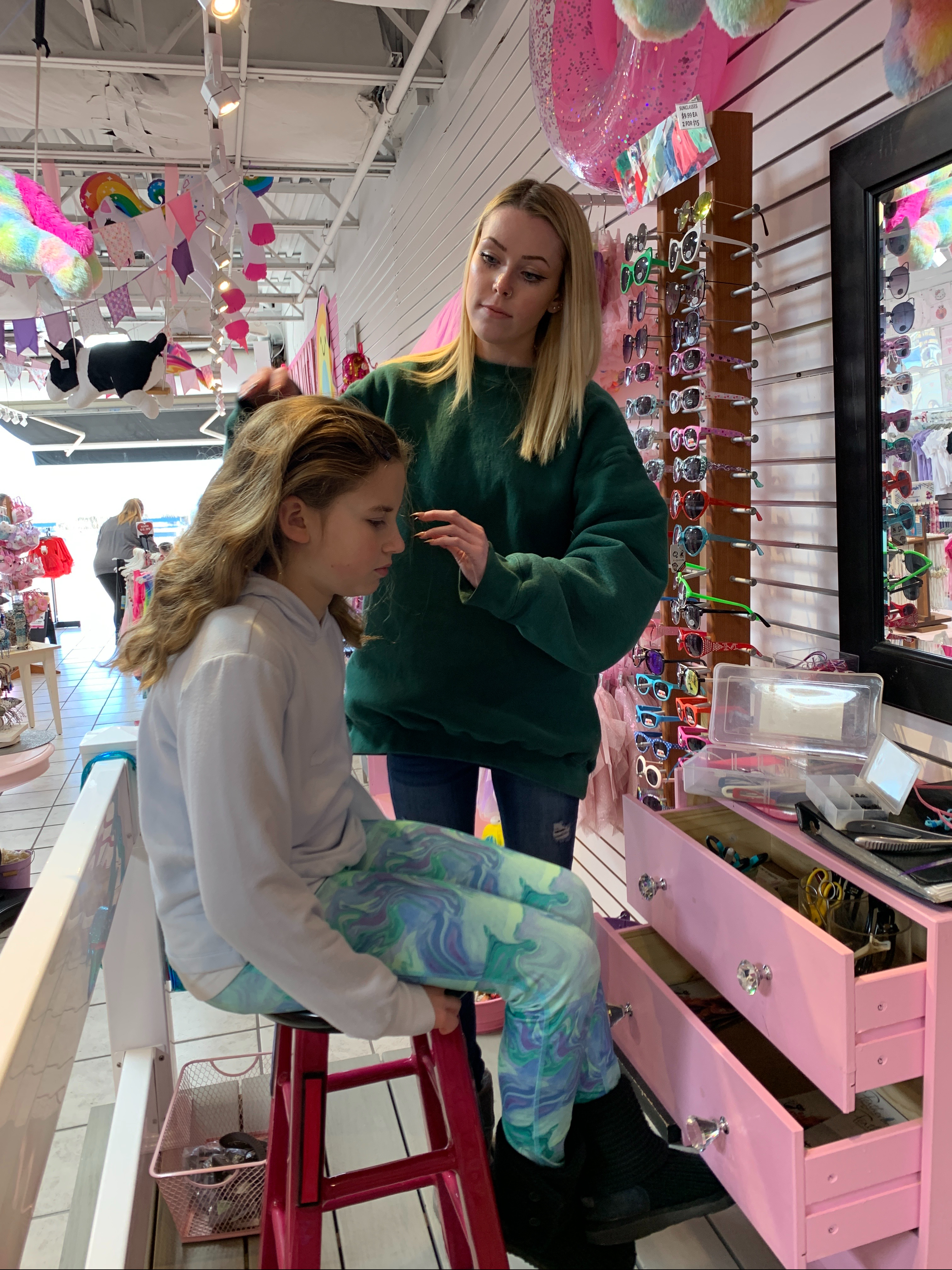 (Tess was feeling pretty grumpy on this day, and I didn’t want her ruining Grace’s special time…so she hung out with Ben. But MacKenzie was loving all the girly activities!)