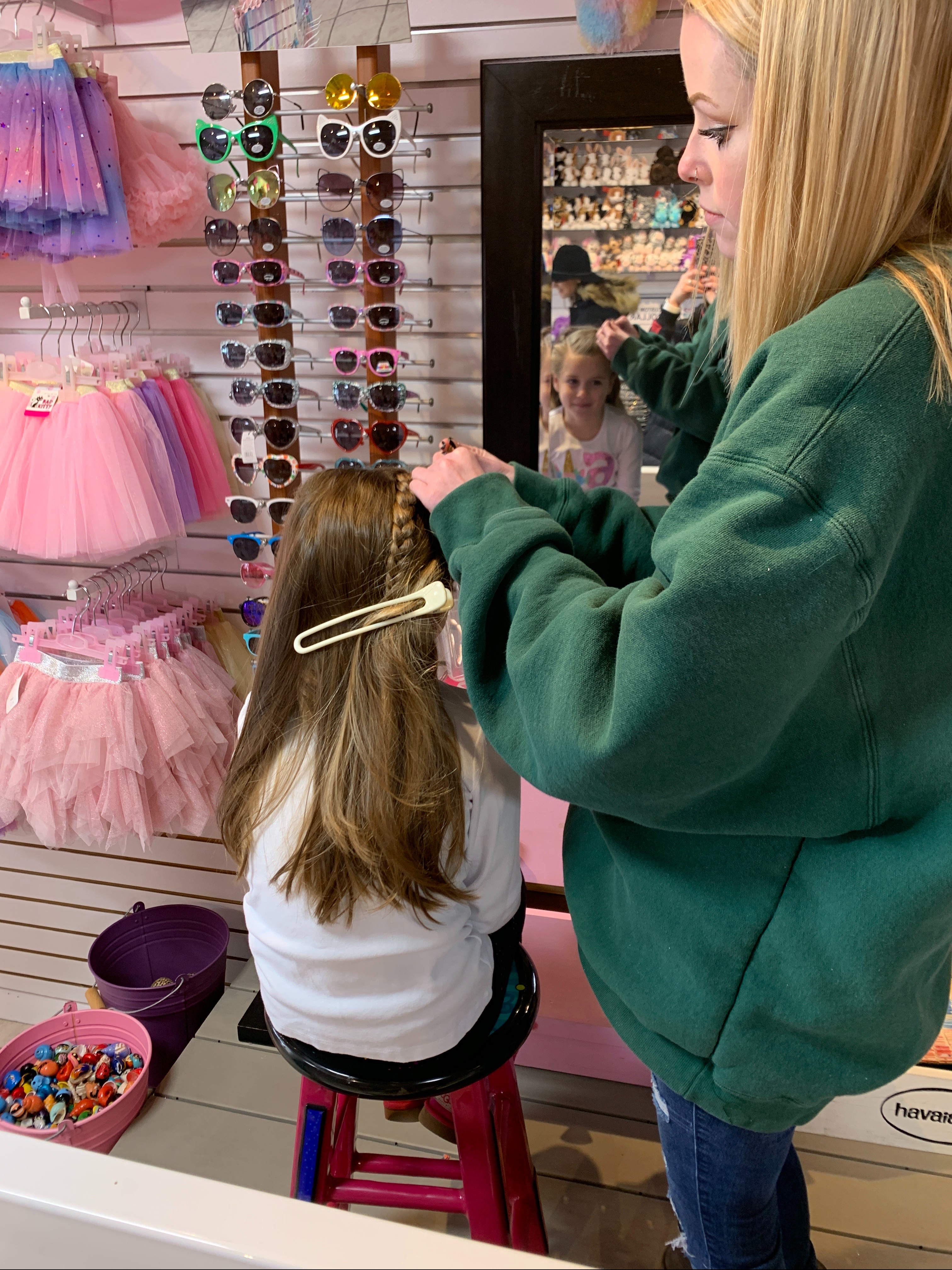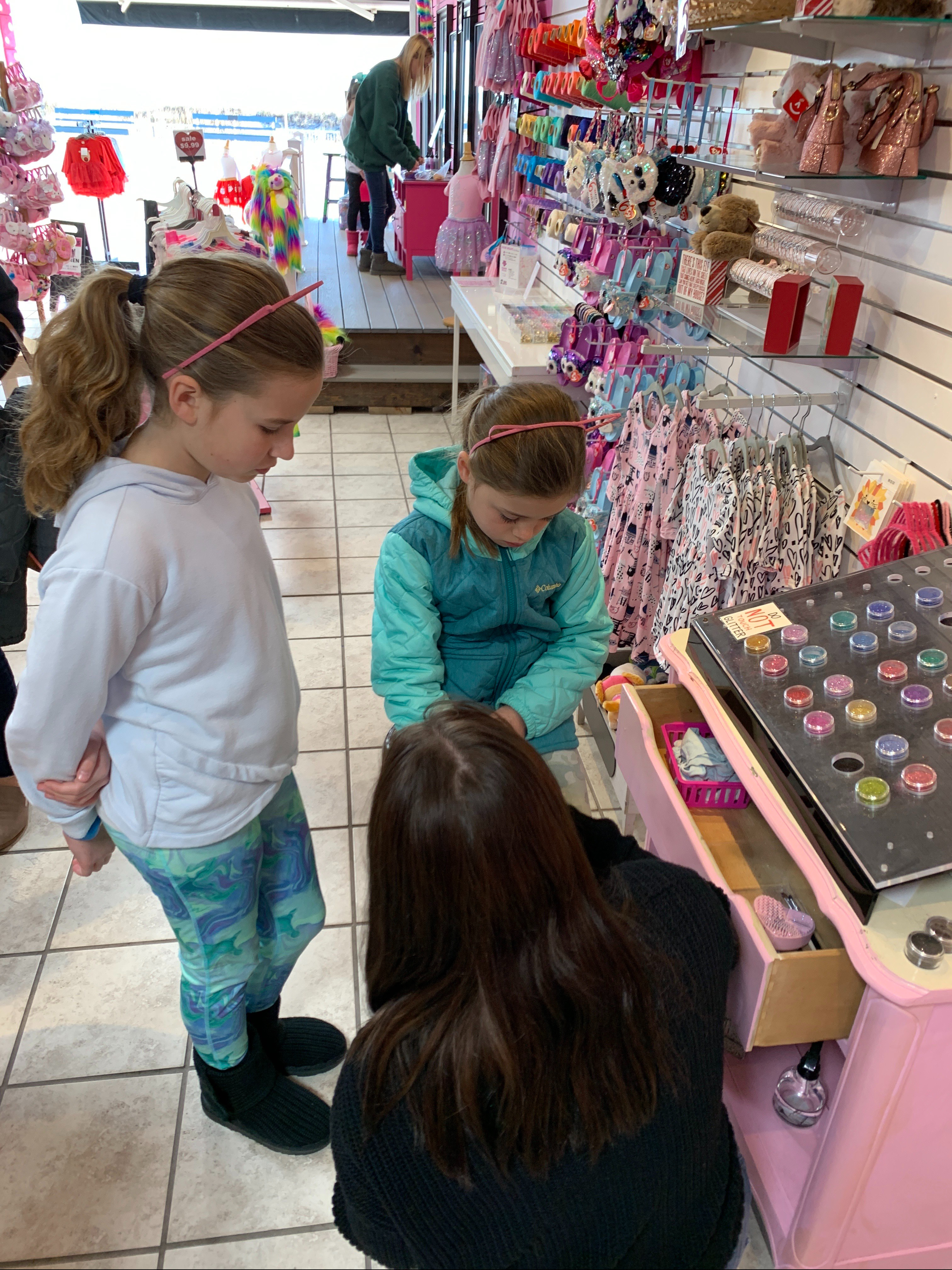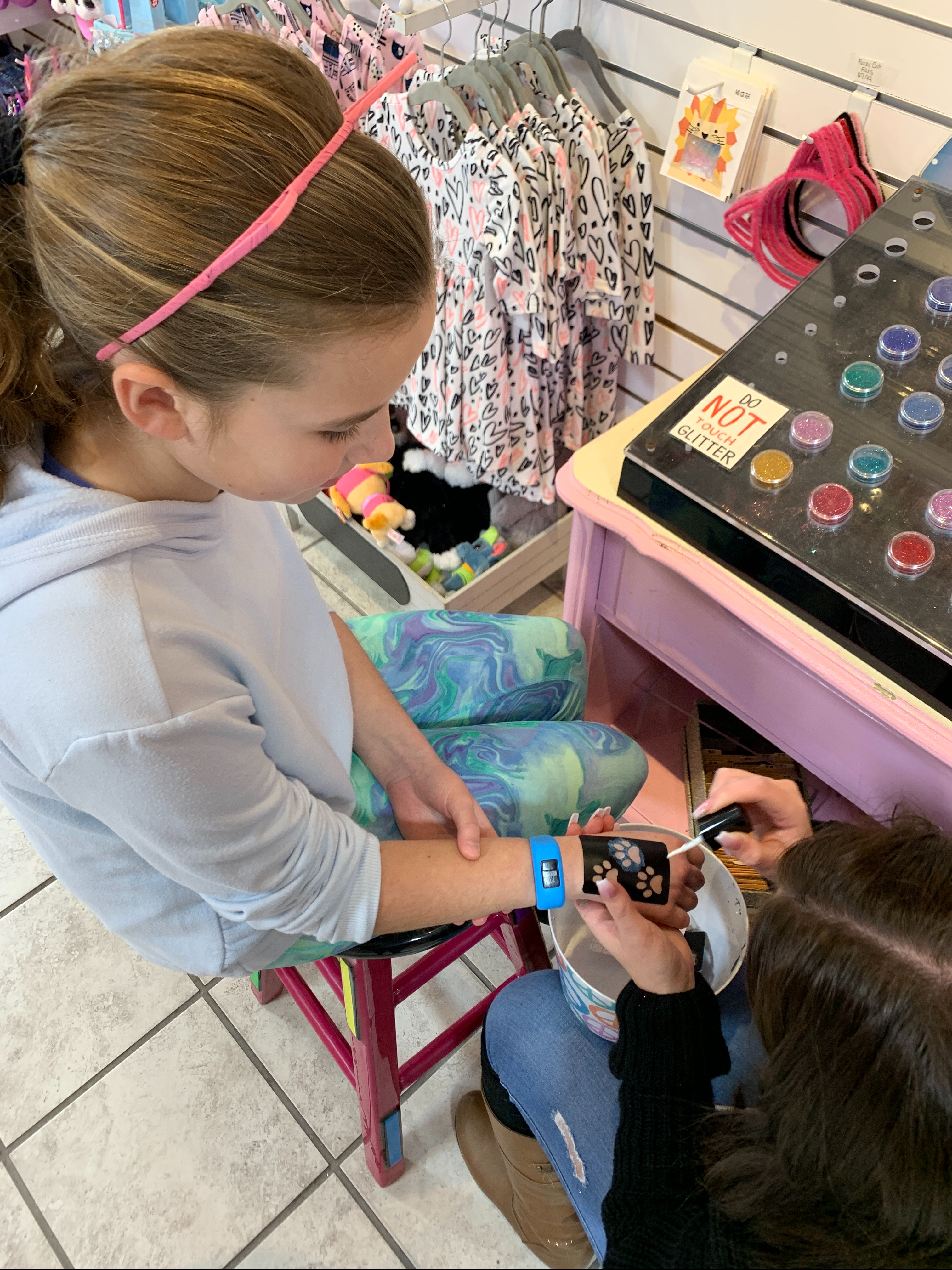 This was followed by glitter tattoos. 4 out of 5 girls went with girly things…mermaids, unicorns, paw prints. And then MacKenzie decided to change it up and get a spider.😂