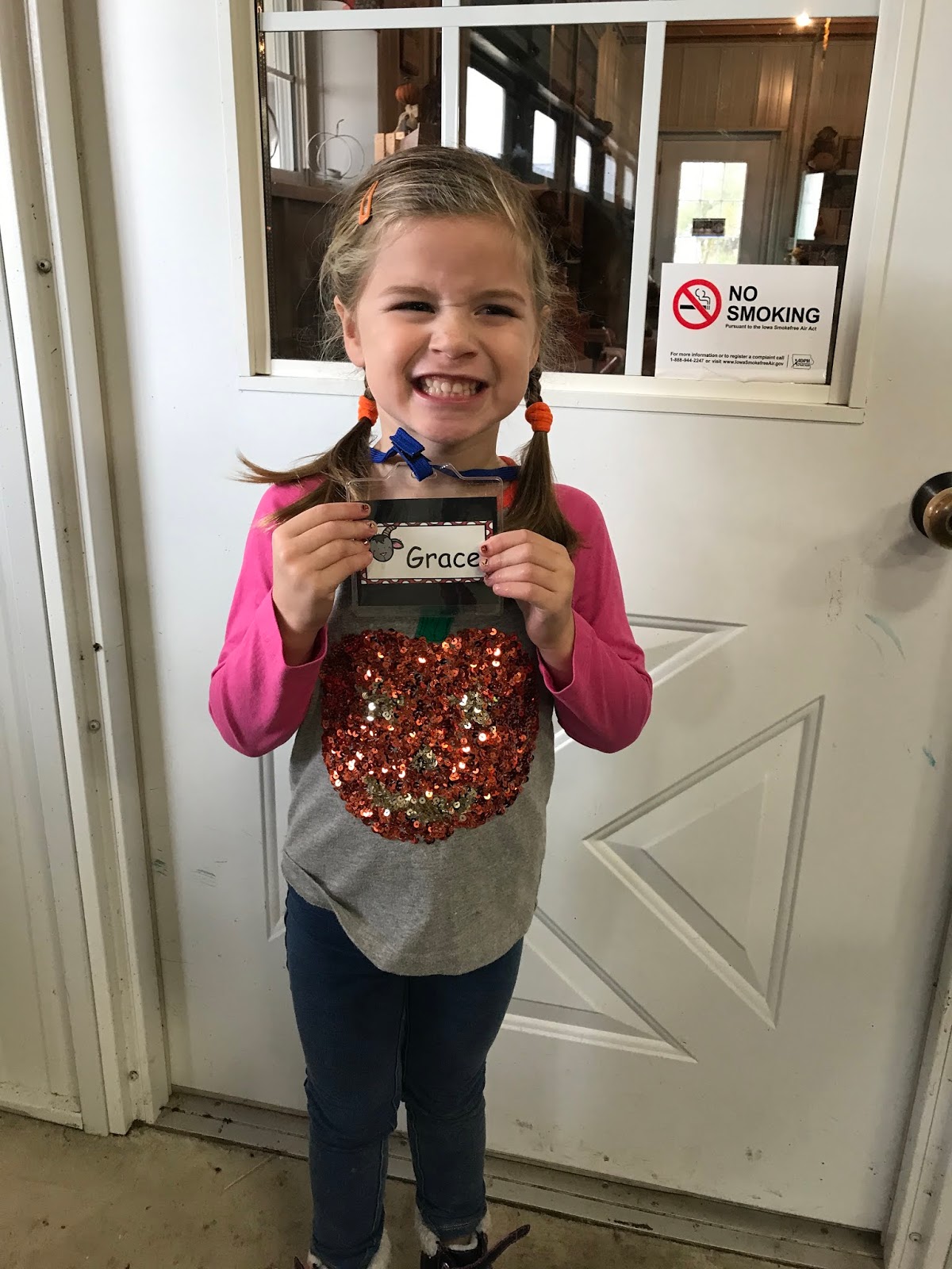 She had been saving this sparkly pumpkin shirt for this very day.