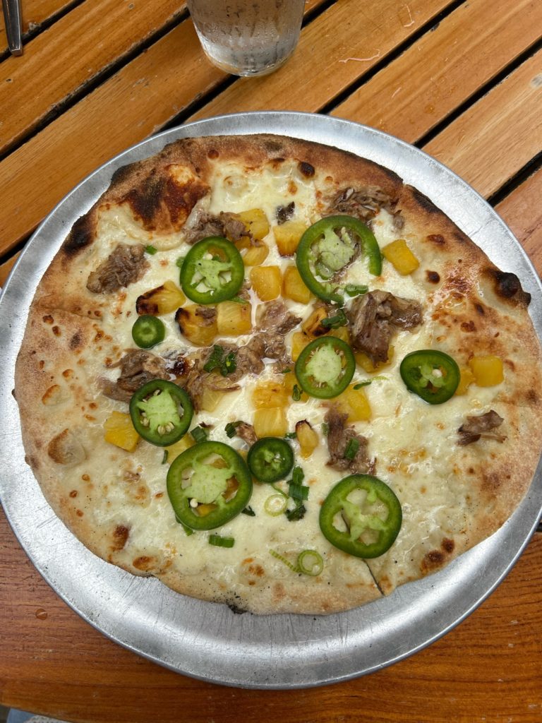 This kalua pork, pineapple, jalapeño, and green onion pizza y’all…..🤩