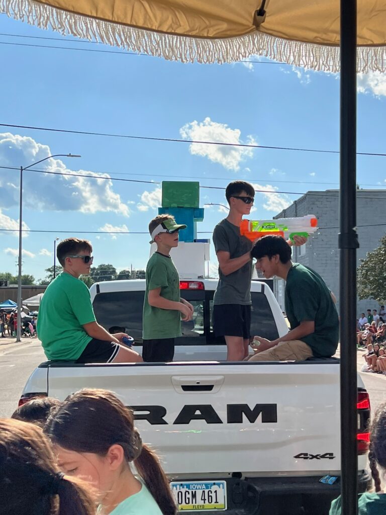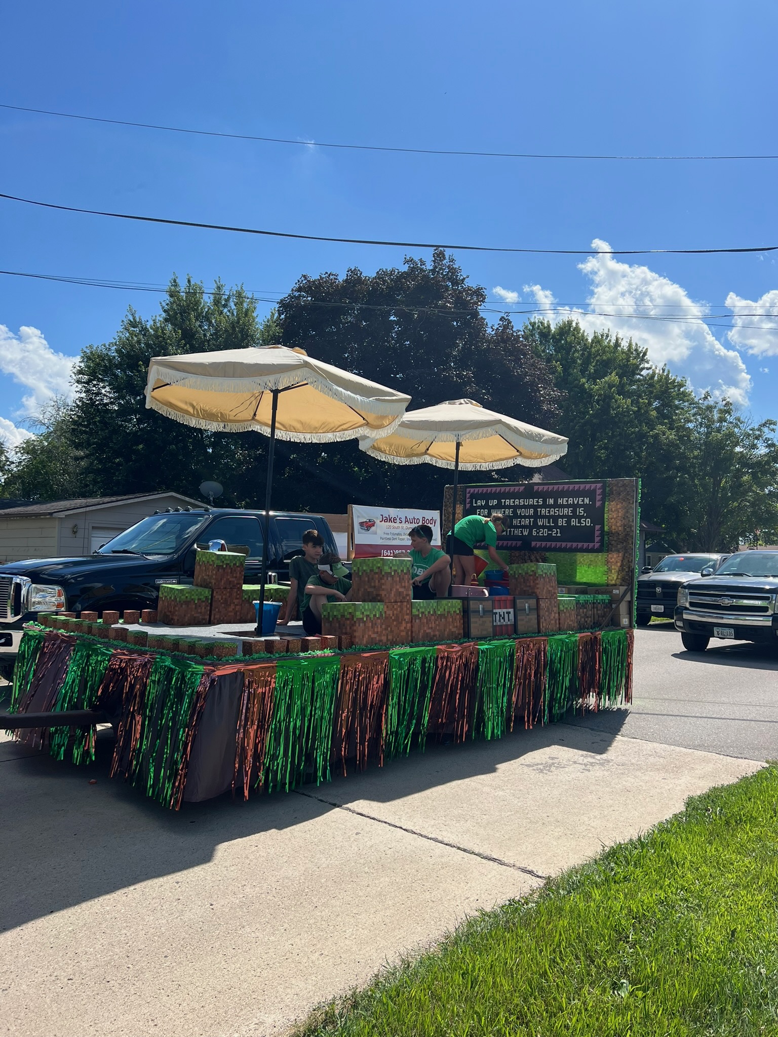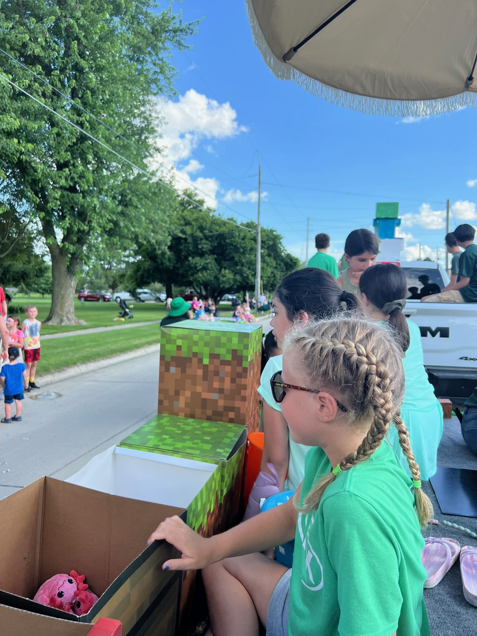 As usual, we enjoyed another sweltering parade in Hampton. But we were smart and included umbrellas on the float this year.