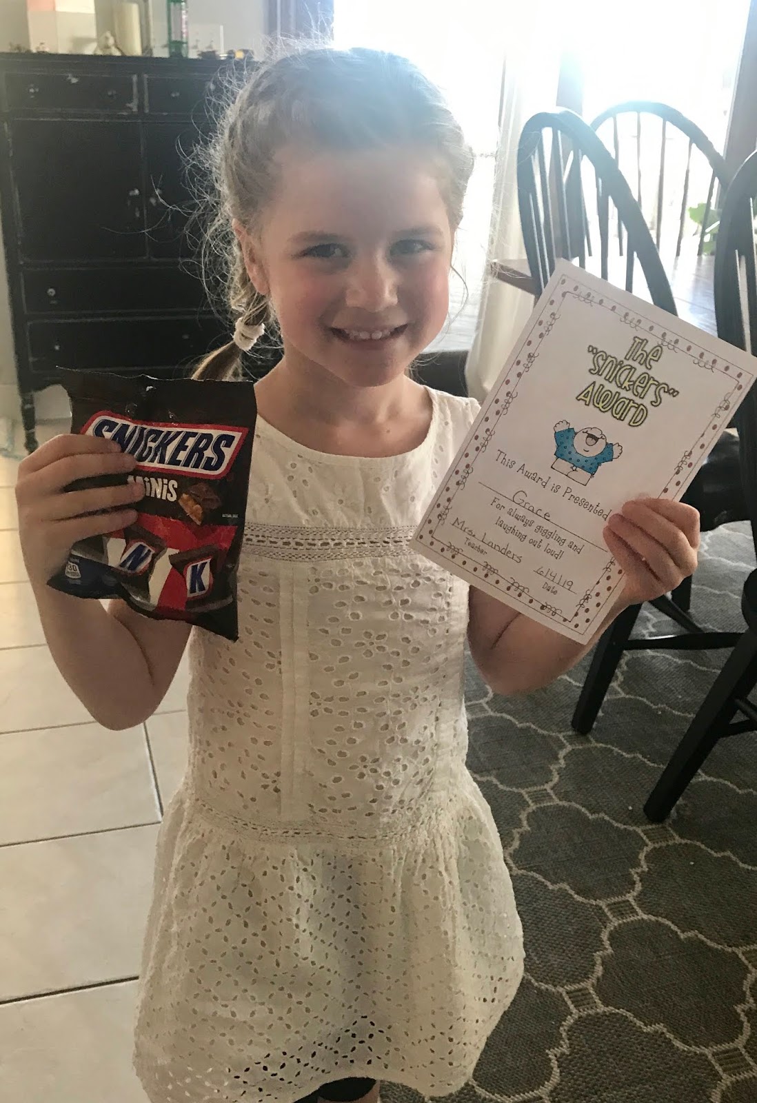 Grace won the “snickers” award, for always laughing at school.
