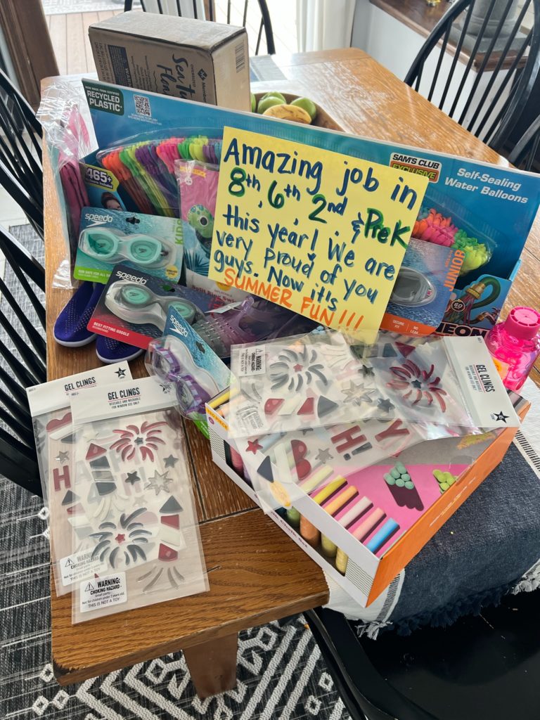 Thanks to our ridiculous Iowa weather this year, the last day of school was 54 degrees…so these pool toys had to be tucked away for a later day. But it’s ok, because we’re just happy it’s SUMMER!