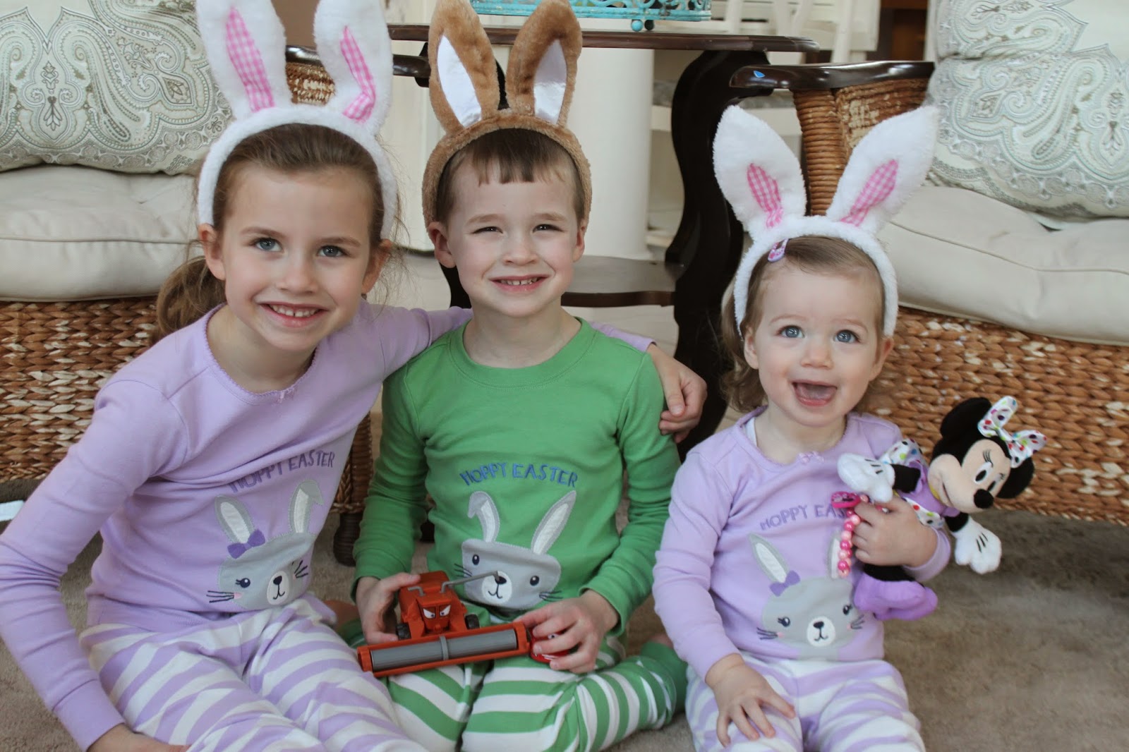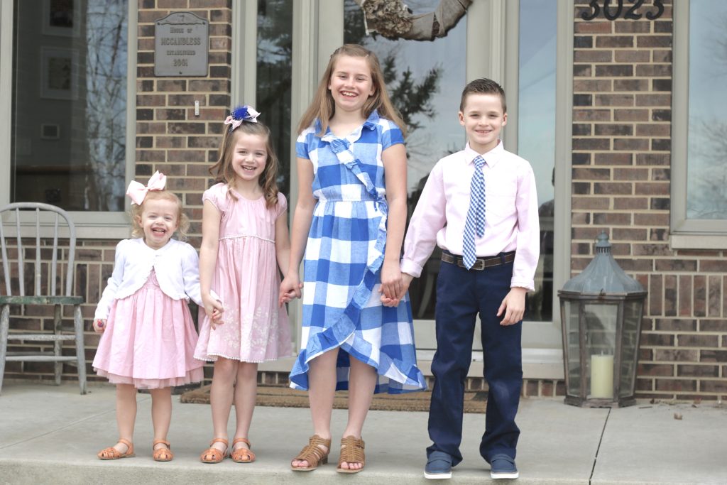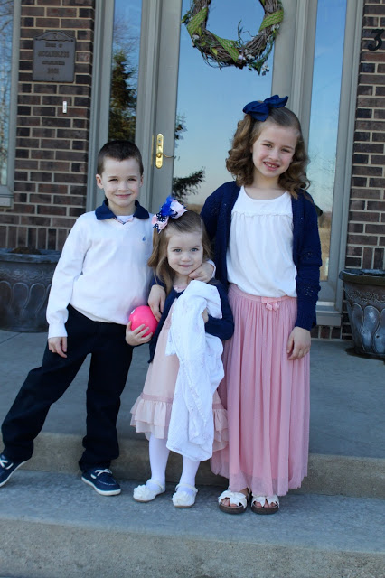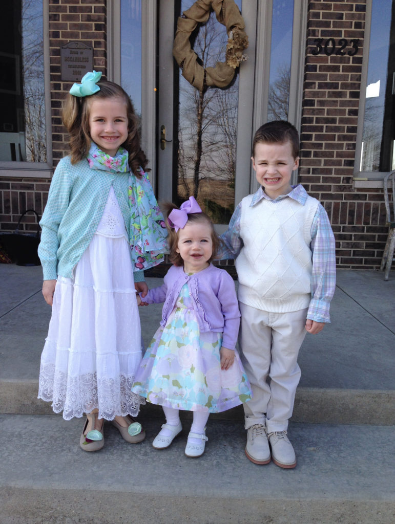 And then Easter morning involves egg hunts, baskets, and new spring outfits (or sometimes hand-me-downs for Grace and Tess😉).