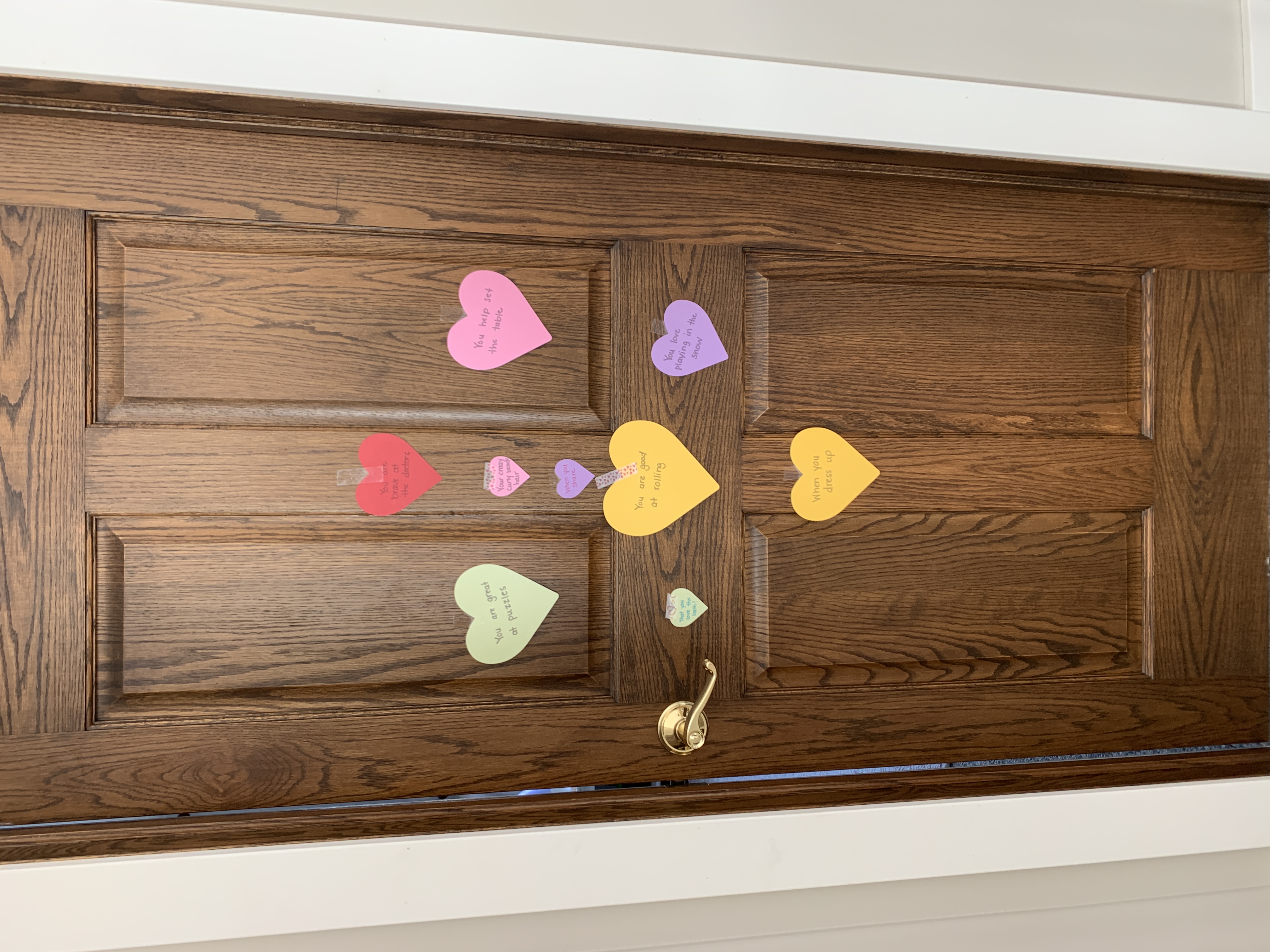 My love languages are words of affirmation, quality time, and acts of service. I like to express my feelings in writing and to encourage others that way. Which is why I enjoy putting hearts on the kids bedroom doors every day during February, expressing something I love about them. I also express it by making food for someone, offering to help in some way, or getting together for a lunch date. My favorite way to receive love? I’m not too picky- smile at me, tell me something encouraging, buy me the smallest gift, make me a cup of coffee, give me a hug….I will feel 100% loved. It doesn’t take much.