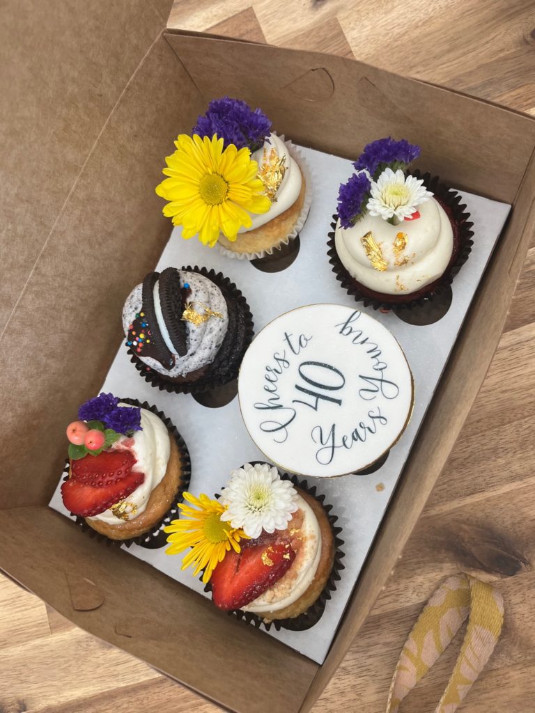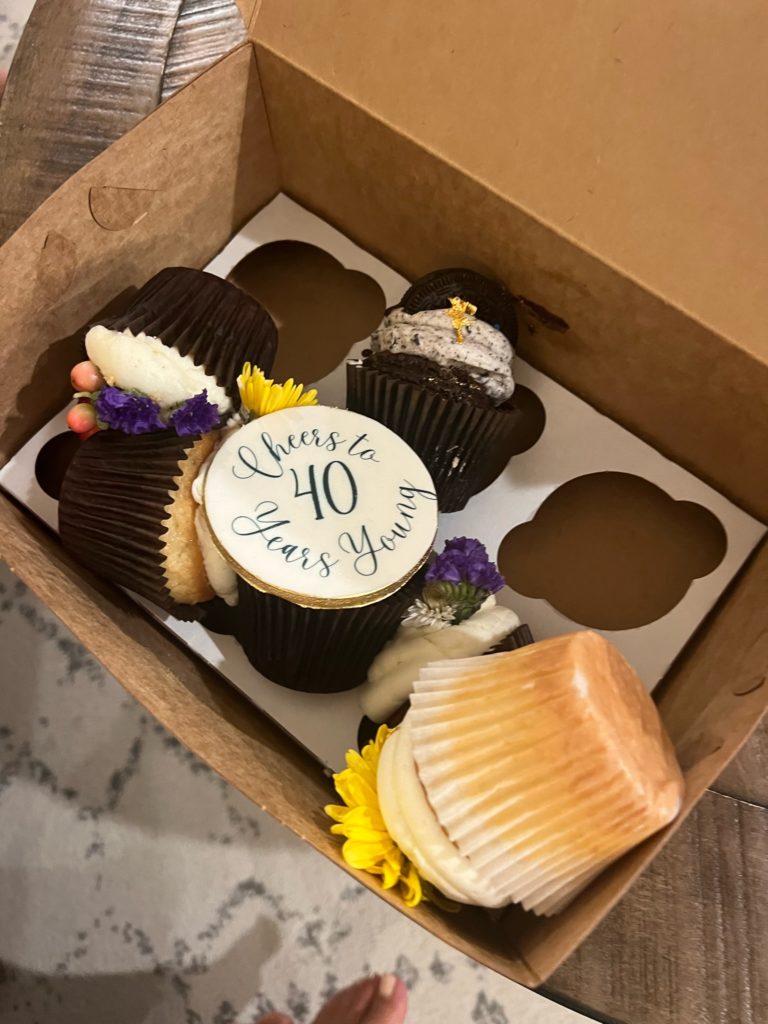The mom pack headed to an outdoor market with live music and then stayed overnight in Galena, IL to celebrate the last one of us to turn 40. We got her the cutest cupcakes…