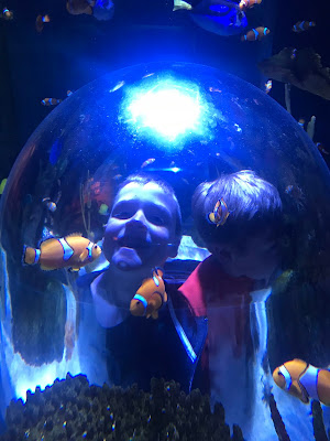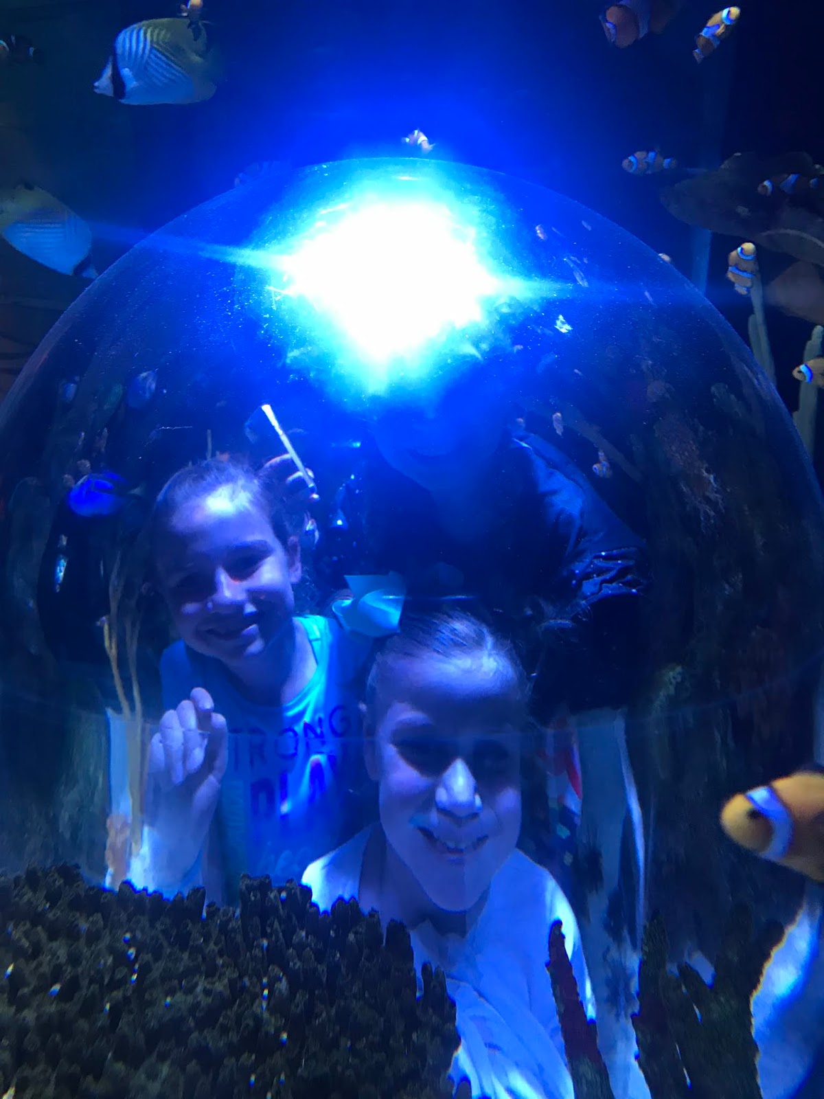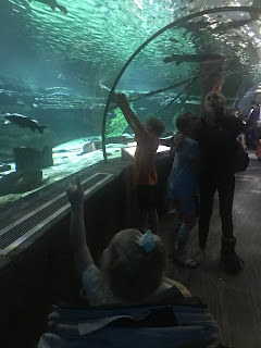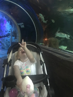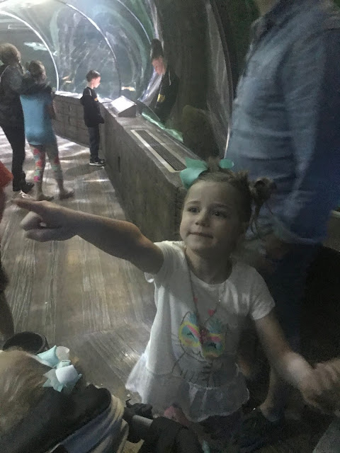Tess LOVED looking at the fish, and pretending that they scared her. Or maybe they actually did scare her. I’m not really sure.