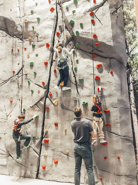 We headed back to the room to wash up and then tackled the ropes course, rock climbing wall, and arcade before eating at the restaurant.