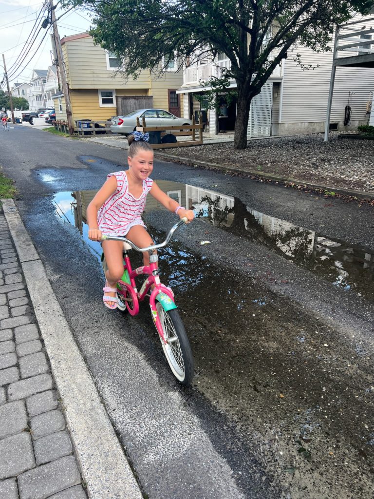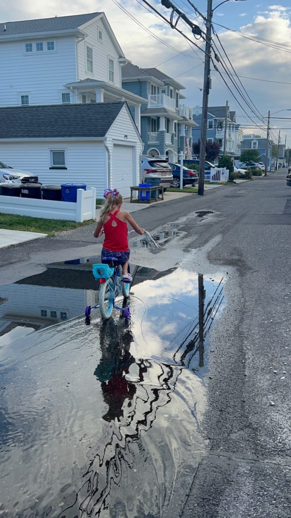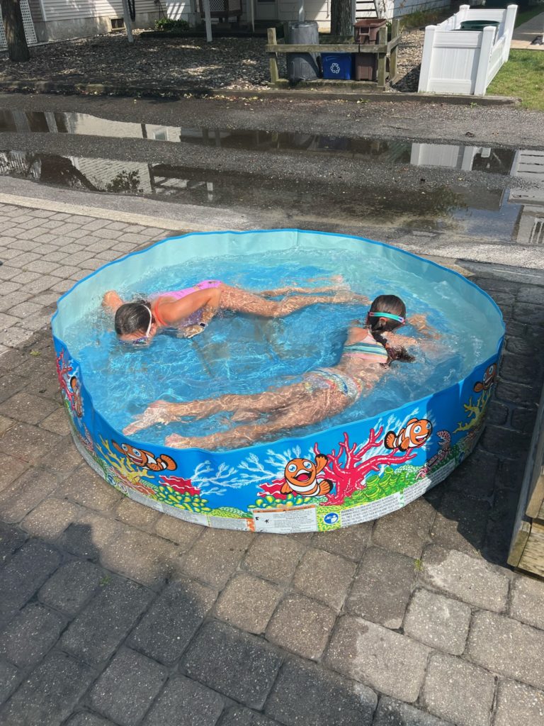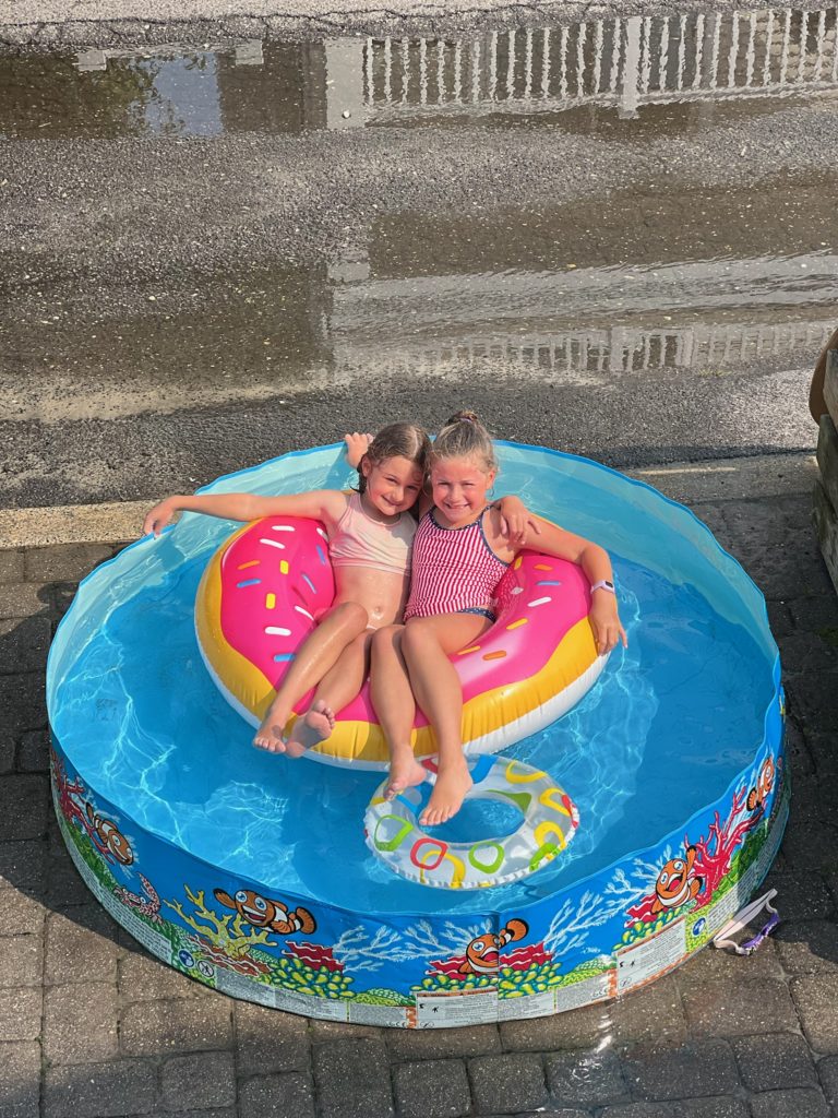 Are those monstrous puddles in the alley from emptying our kiddie pool every day? Yes, yes they are. But our ocean loving girls also live for swimming in a foot of water after the beach.