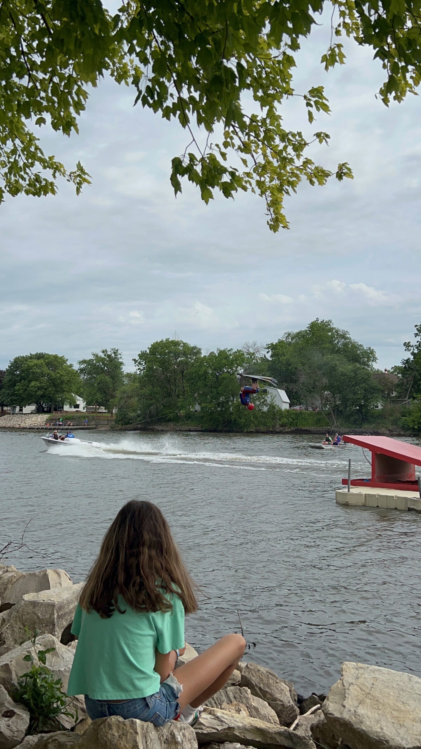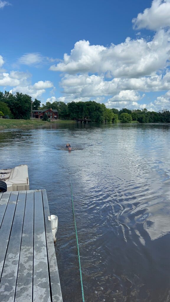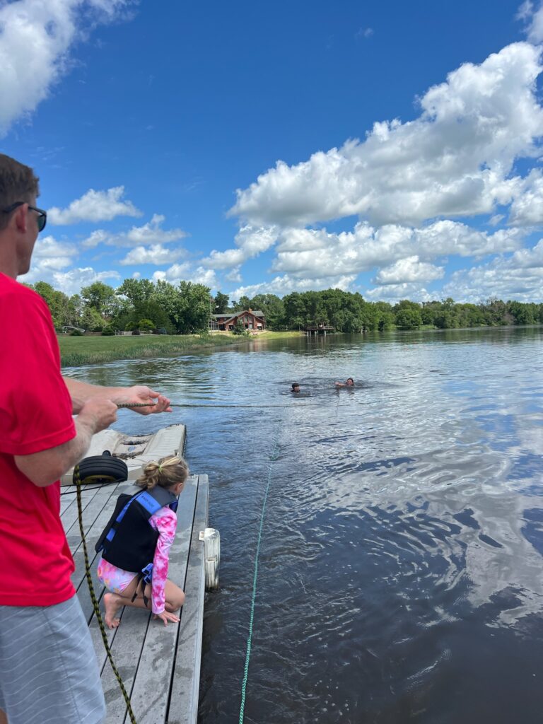 The kids really wanted to swim in the current, so we attached them to ropes and let them jump off the dock to cap off our redneck river fun.