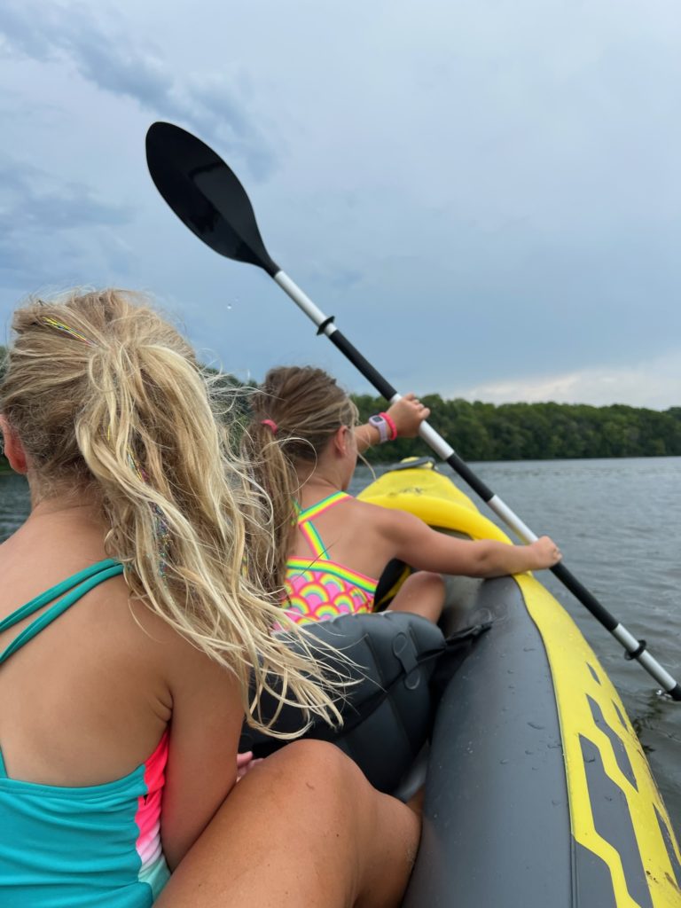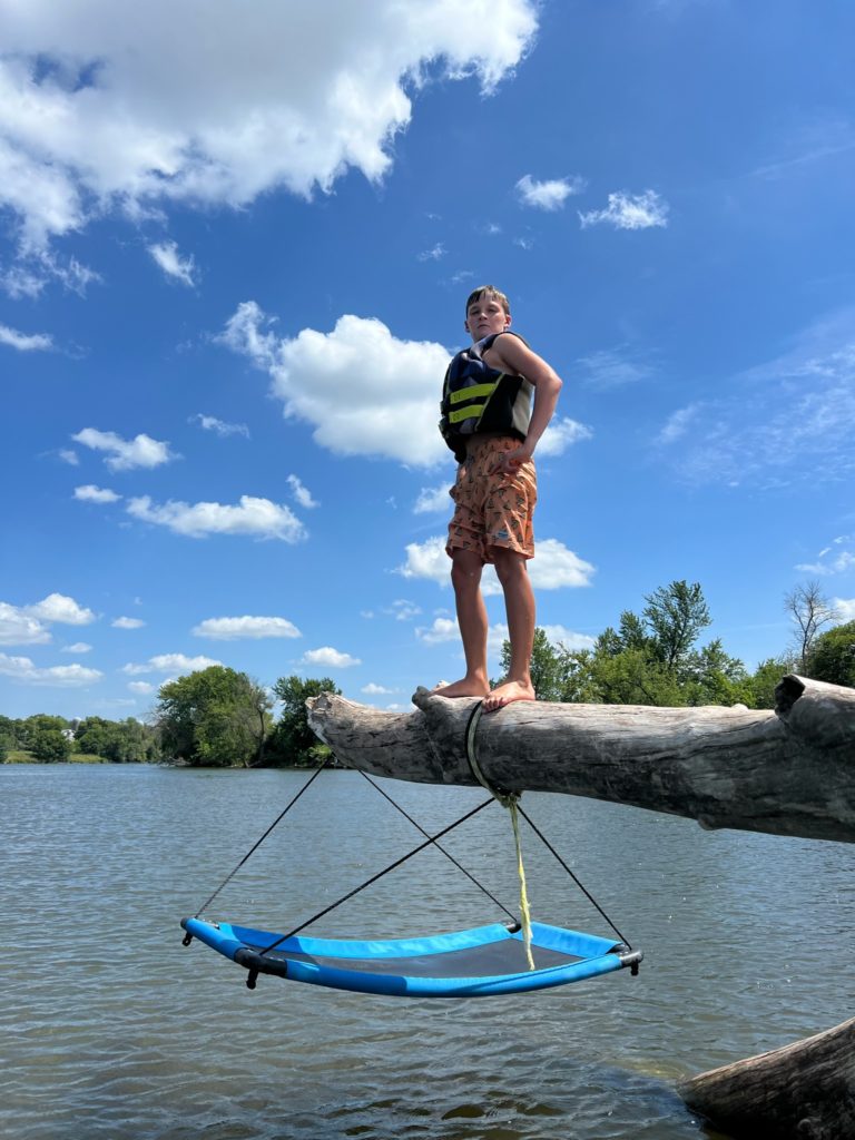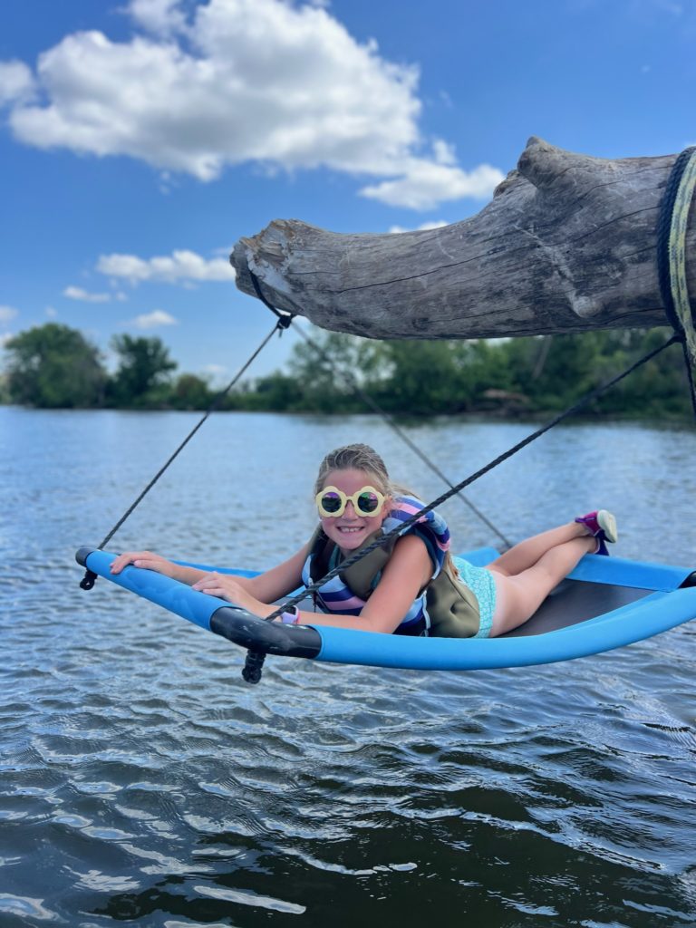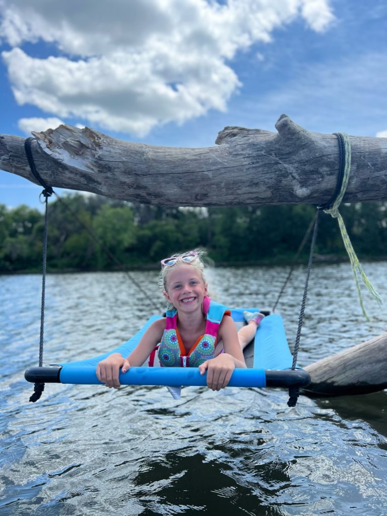 This huge log got stuck on the sandbar right in front of our house, and the kids absolutely love climbing on it. The river is shallow enough that you can walk the entire way to it from our dock (their lifejackets weren’t actually necessary…they had just finished tubing).