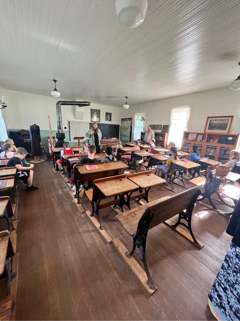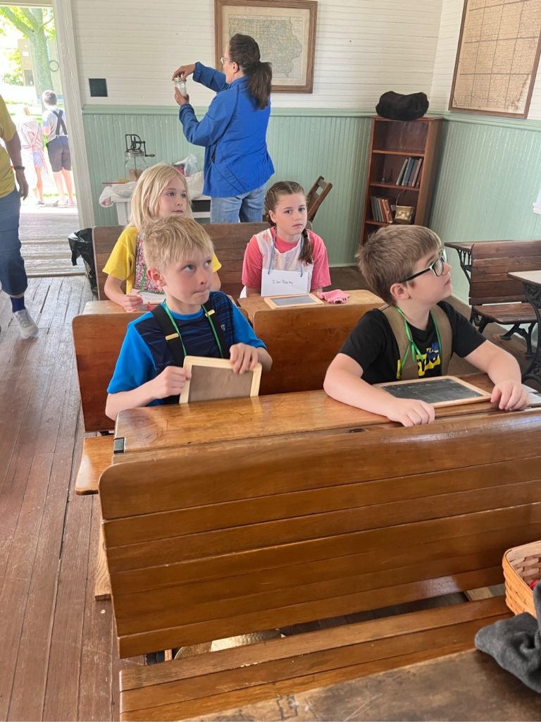 Grace and her class spent the day at an old school house, where her name was Ellen Bailey and she wore an apron.