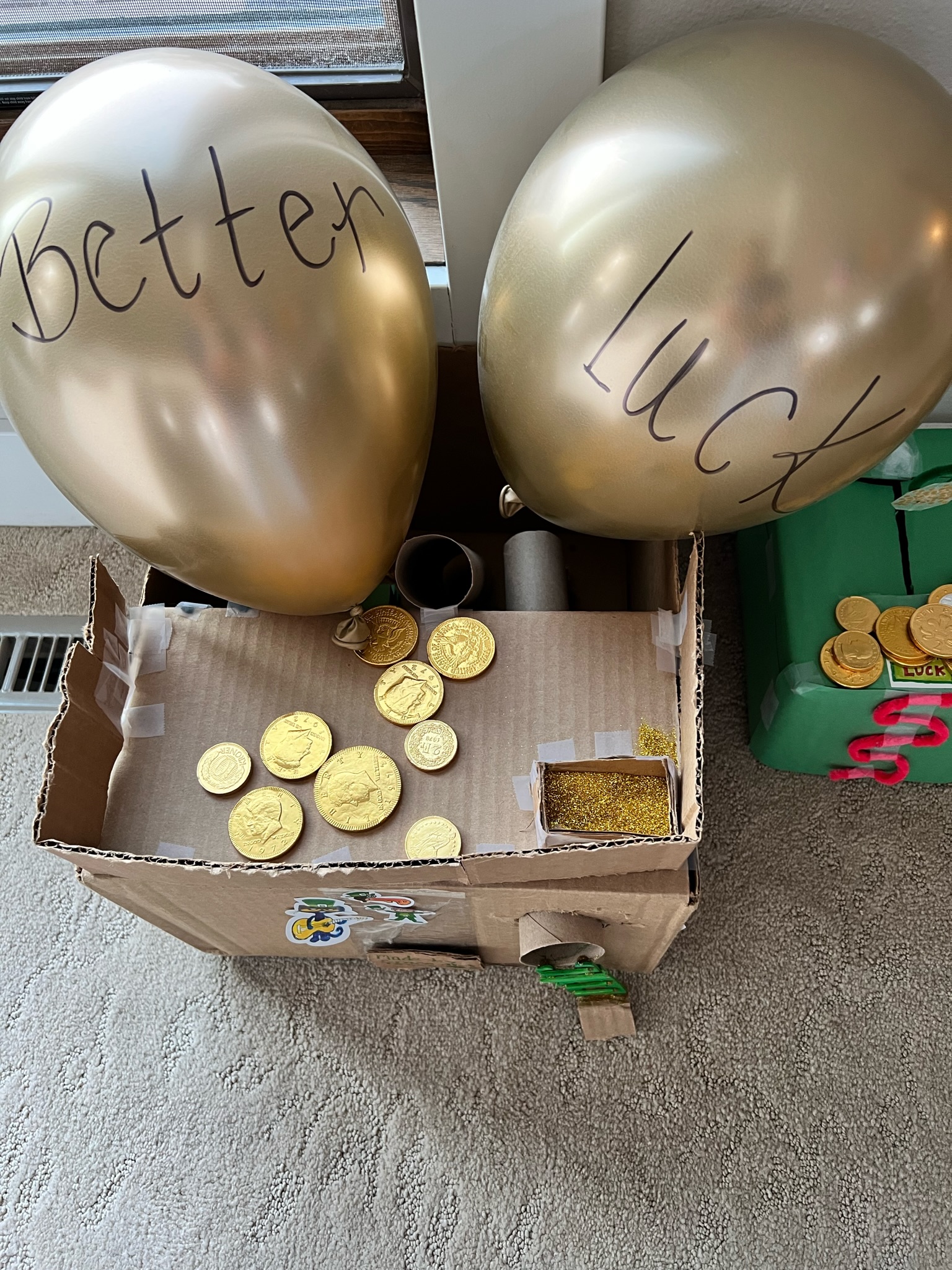 But it was to no avail. That sneaky leprechaun fooled them once again, but did leave some chocolate coins and decorations on their bedrooms doors.