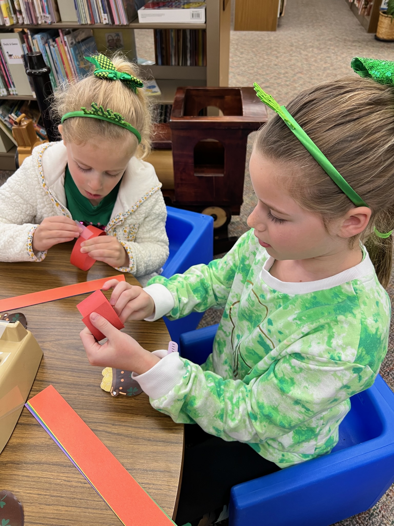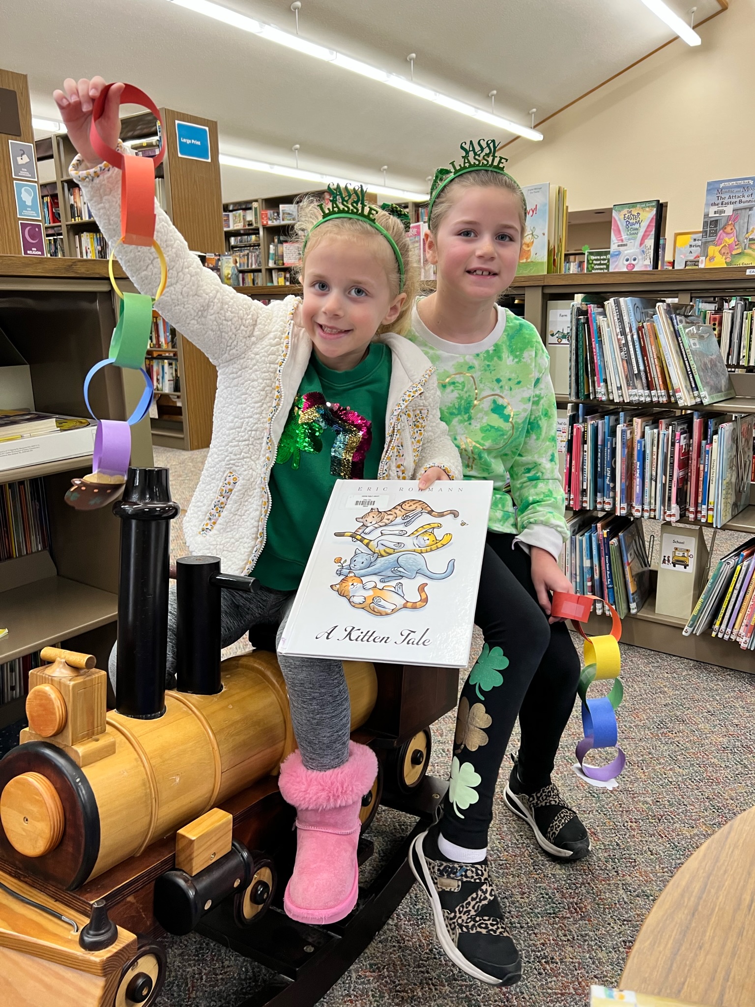 and took a trip to the library for some books, a shamrock hunt, and cute little crafts.