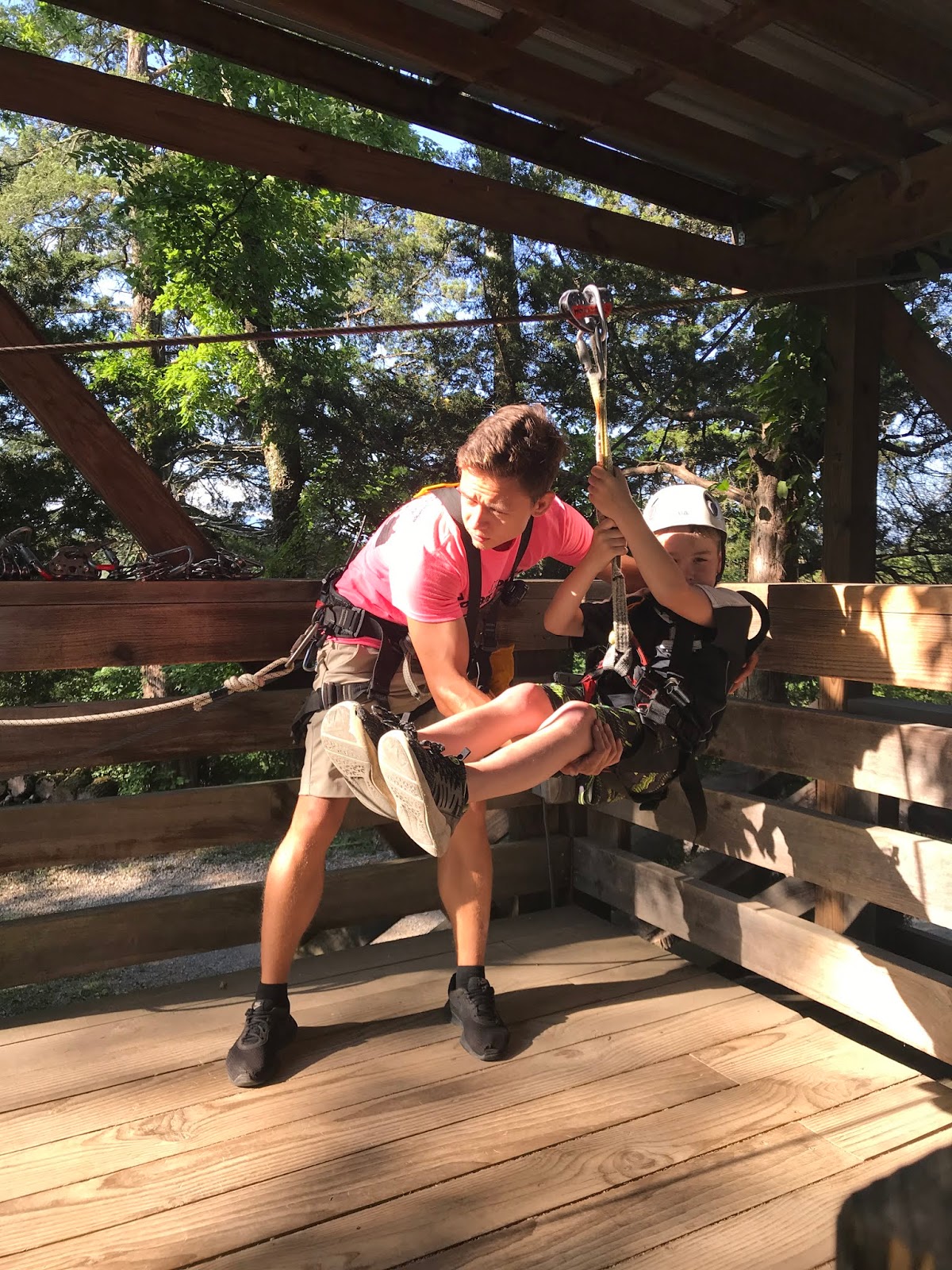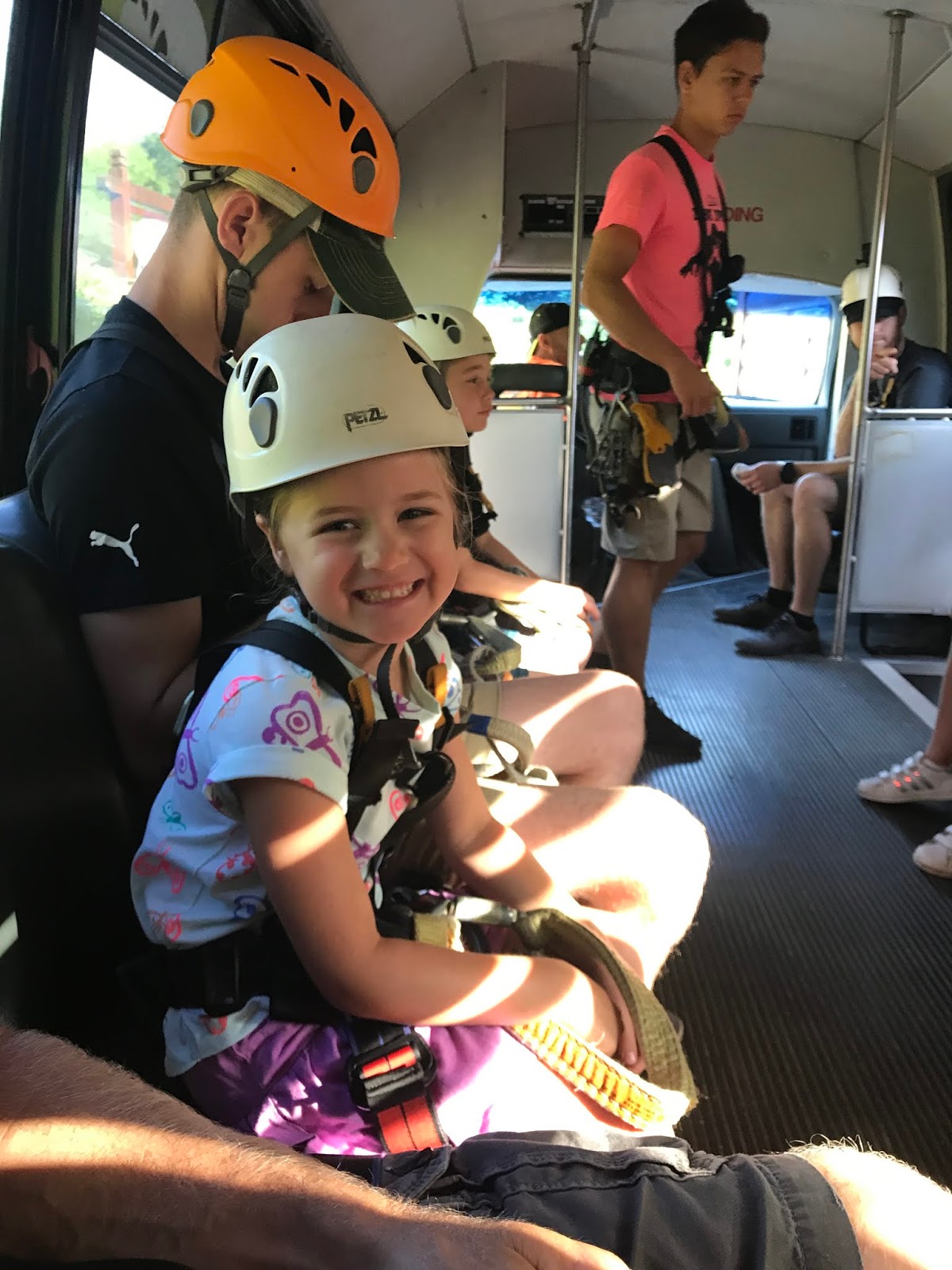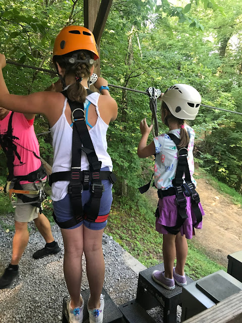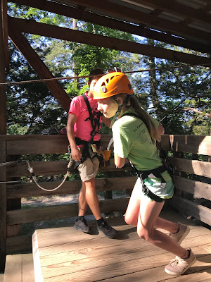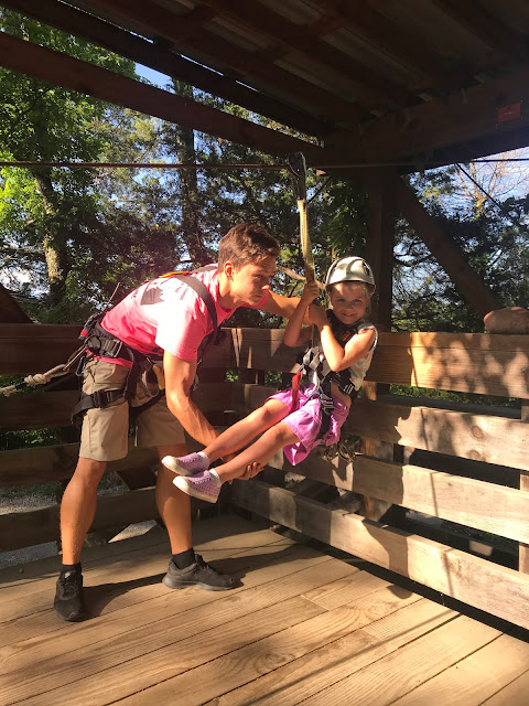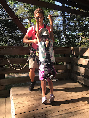 These kids were all so brave. Check out tiny Norah hanging from the line while getting hooked up. 😂