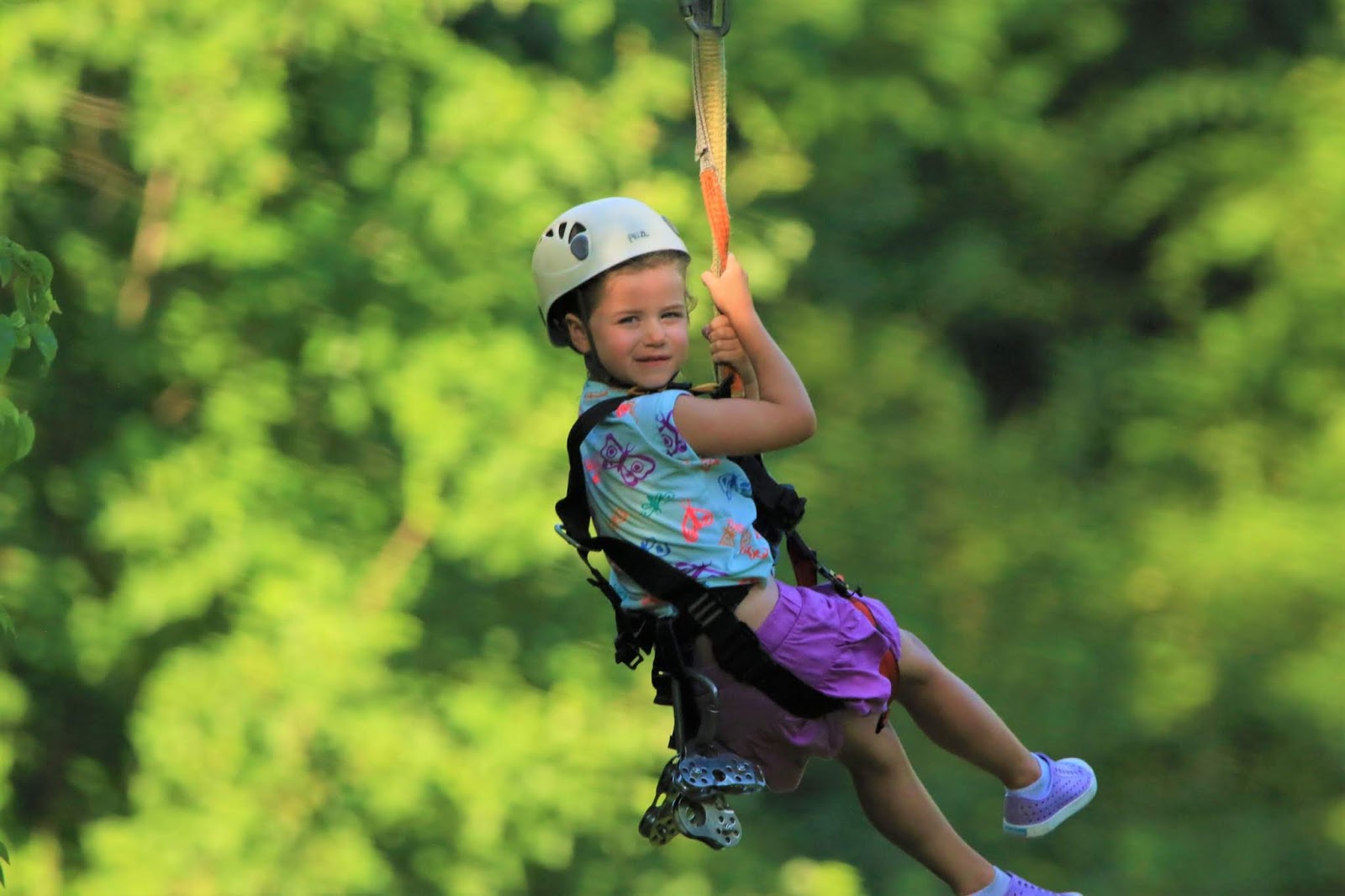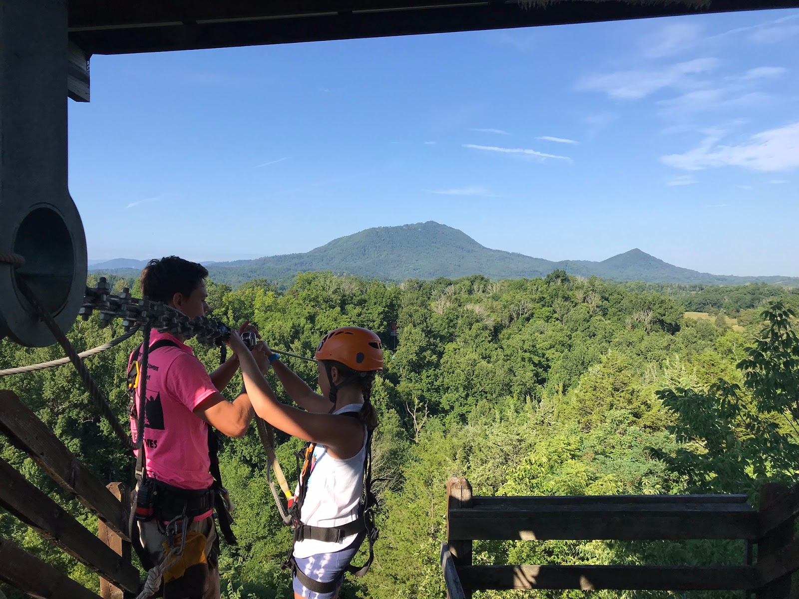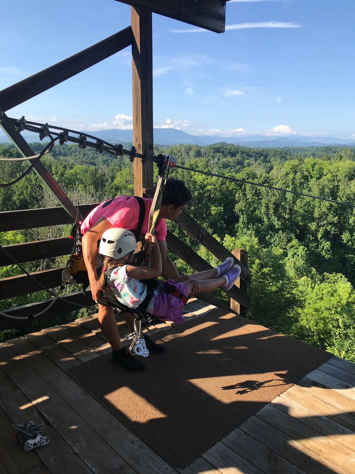 These kids were all so brave. Check out tiny Norah hanging from the line while getting hooked up. 😂