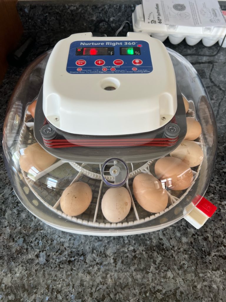 Thanks to the friend of a friend, we scored an incubator and some fertilized eggs, and better yet, she was willing to take the chicks back when we were finished with them! Because I most definitely have no desire to own chickens.