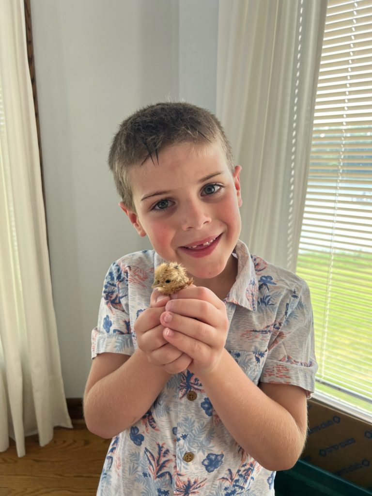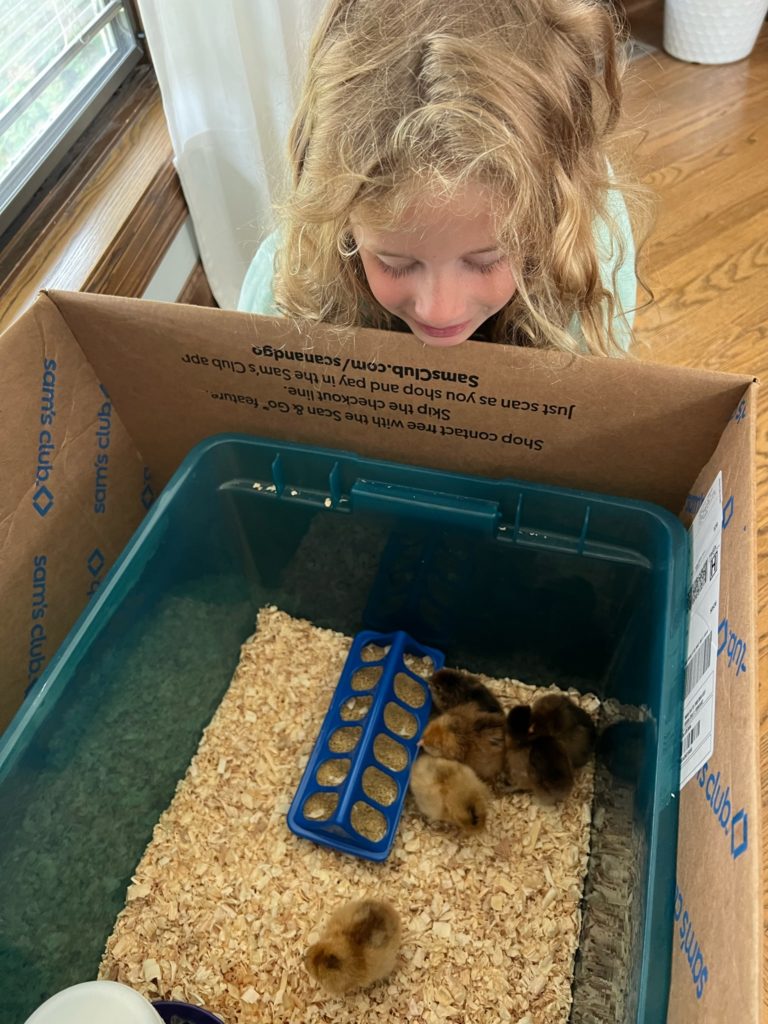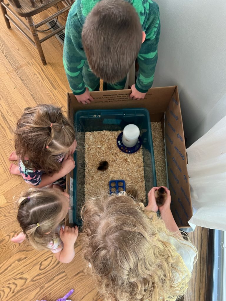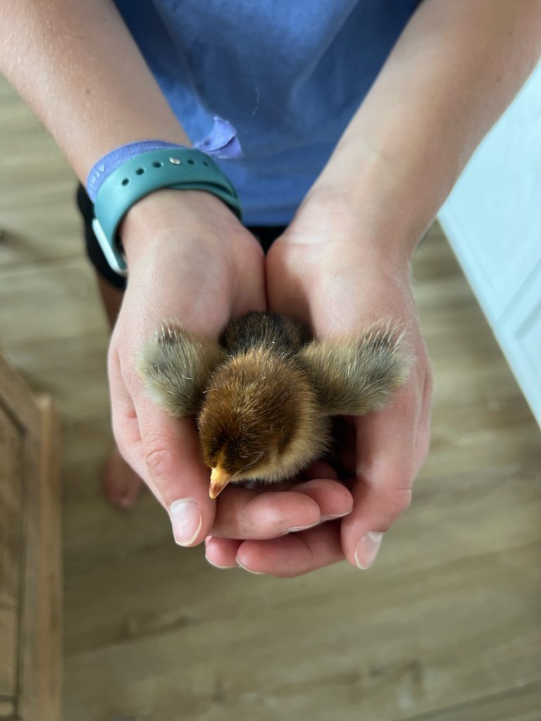 It’s a pretty amazing process how this little animal is able to peck it’s way out of an egg. Before we knew it, we had six fluffy little chicks.