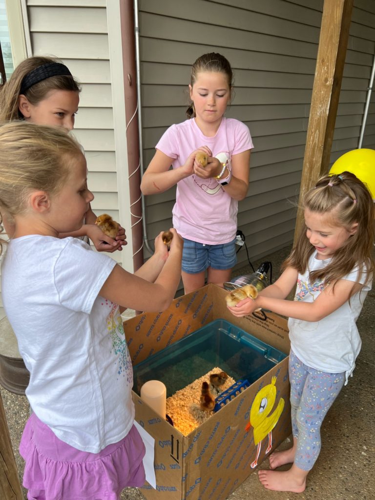 So great to see the kids with the little chicks! Tessa’s chick party was fun for all!