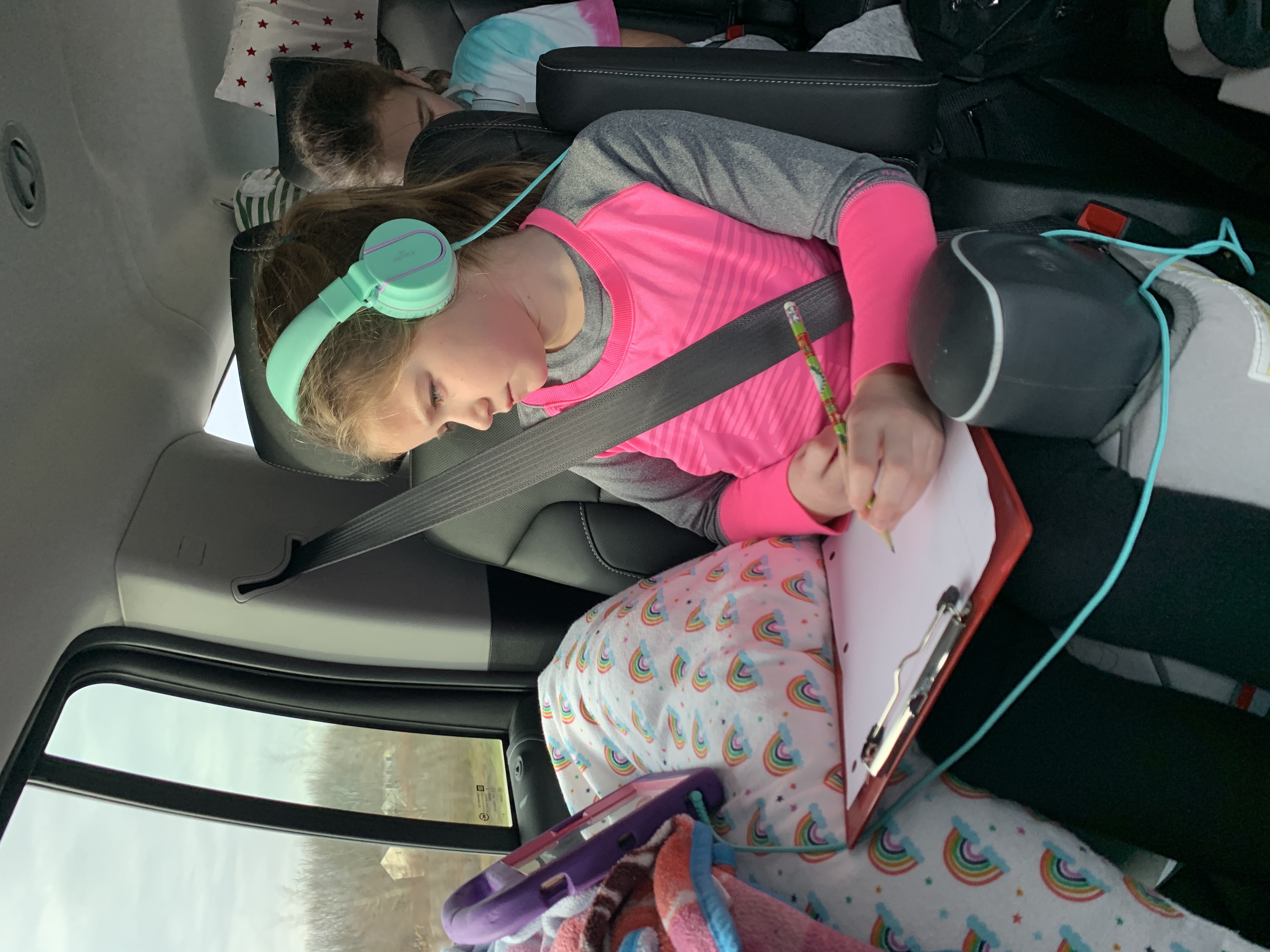 The kids had several zoom meetings to attend, so they did them on the road. Thanks, teachers, for keeping them occupied for a bit. 😏