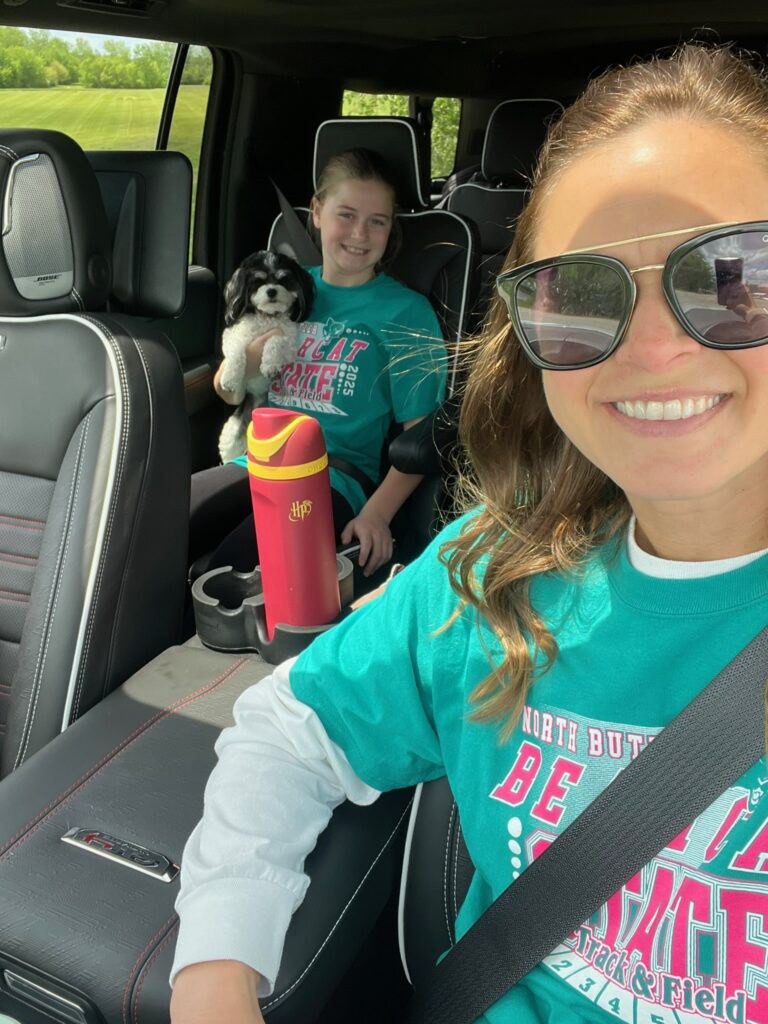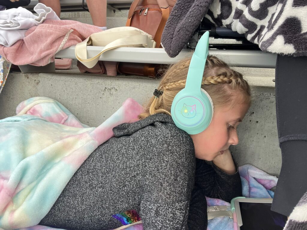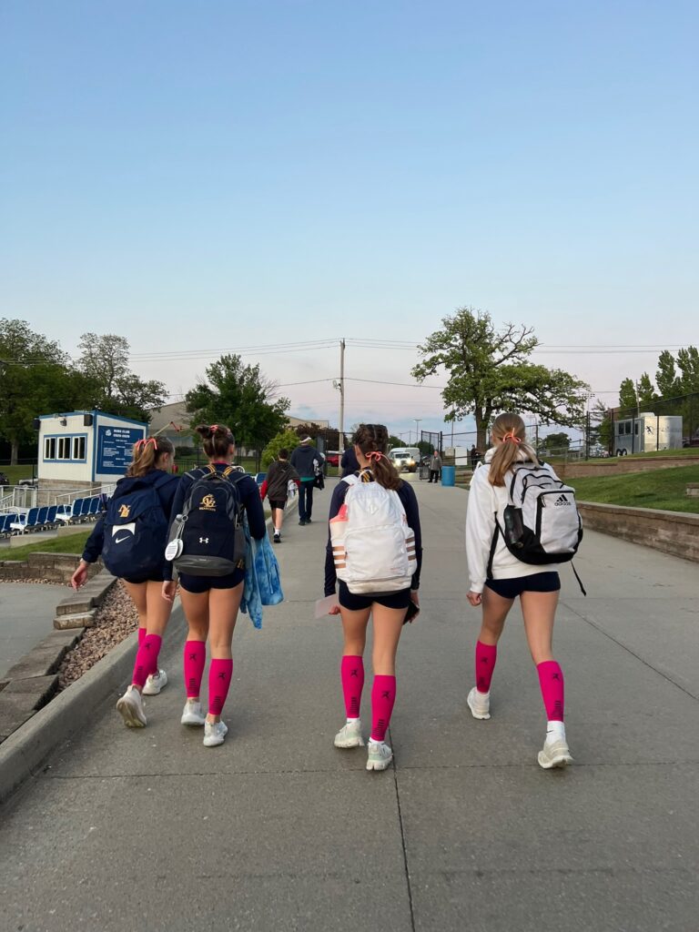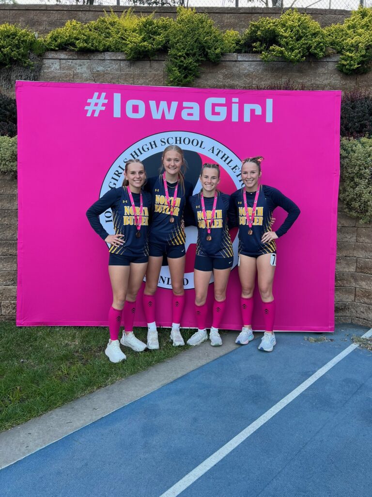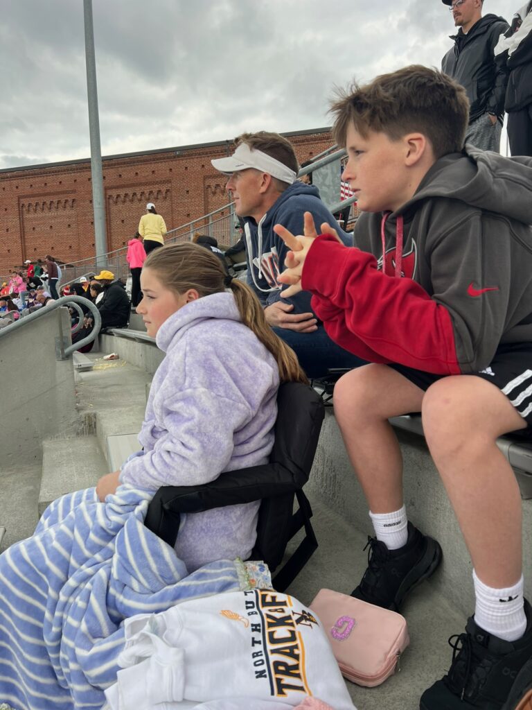 As I mentioned before, Claire’s shuttle hurdle team made it to state. Â And state happened to start on our last day of school. Â She and her teammates got out at 10 that day, and then headed to Des Moines with their coach. Â I picked up the girls from school and then we all made our way down there to cheer her on.