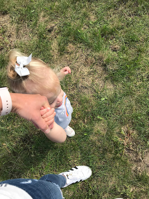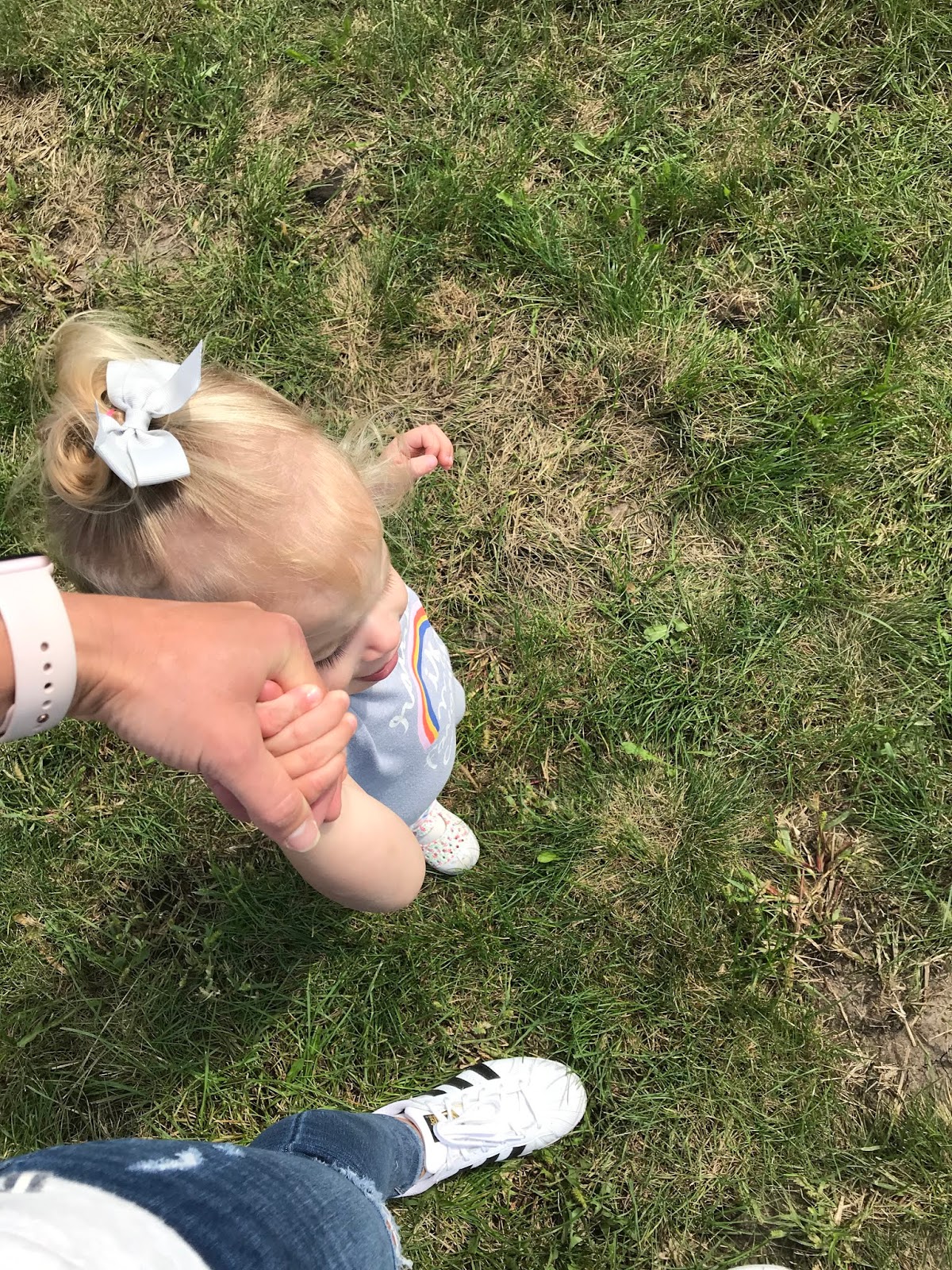 She walks while only holding onto one of my hands.
