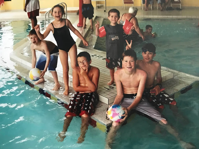 I came across this picture from the day after our wedding, which was also the first day they opened this pool area! That cute little boy on the far left is getting married exactly two weeks from today. 😳