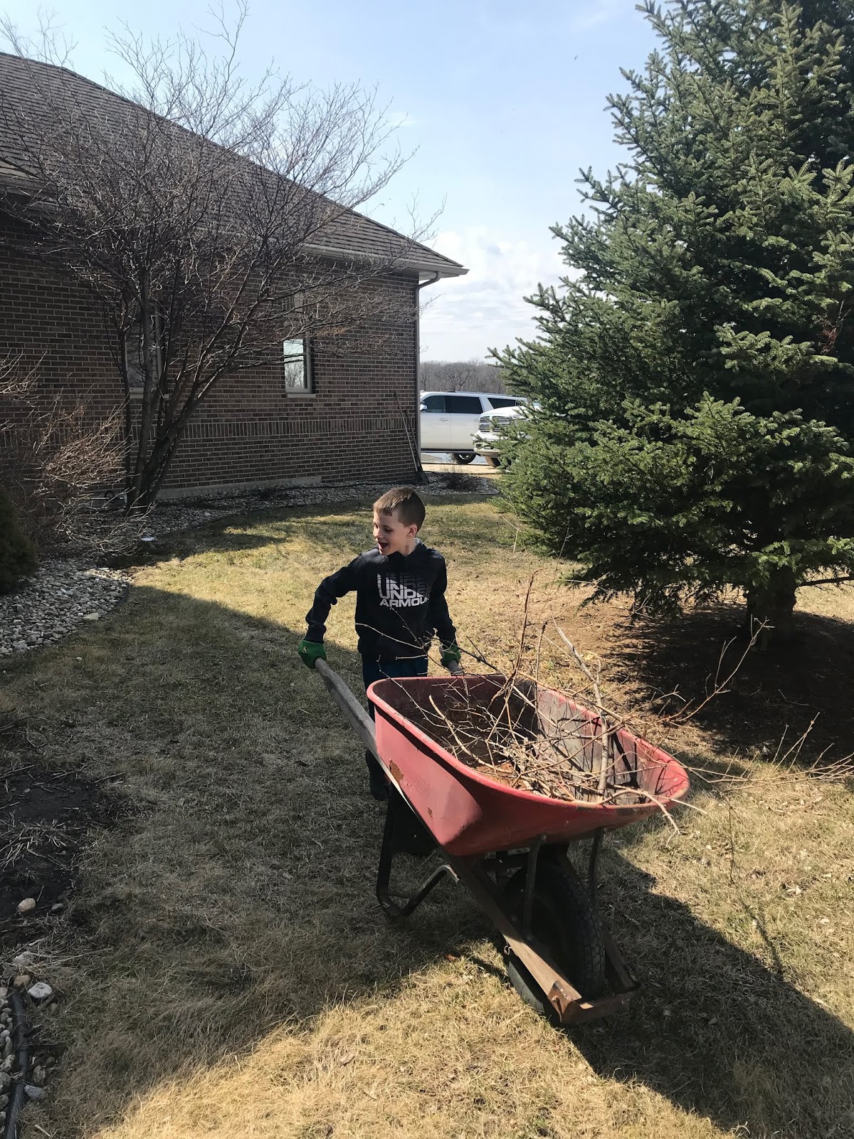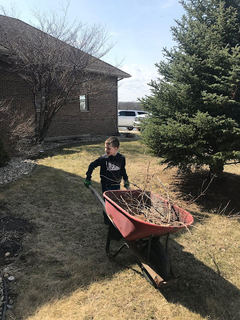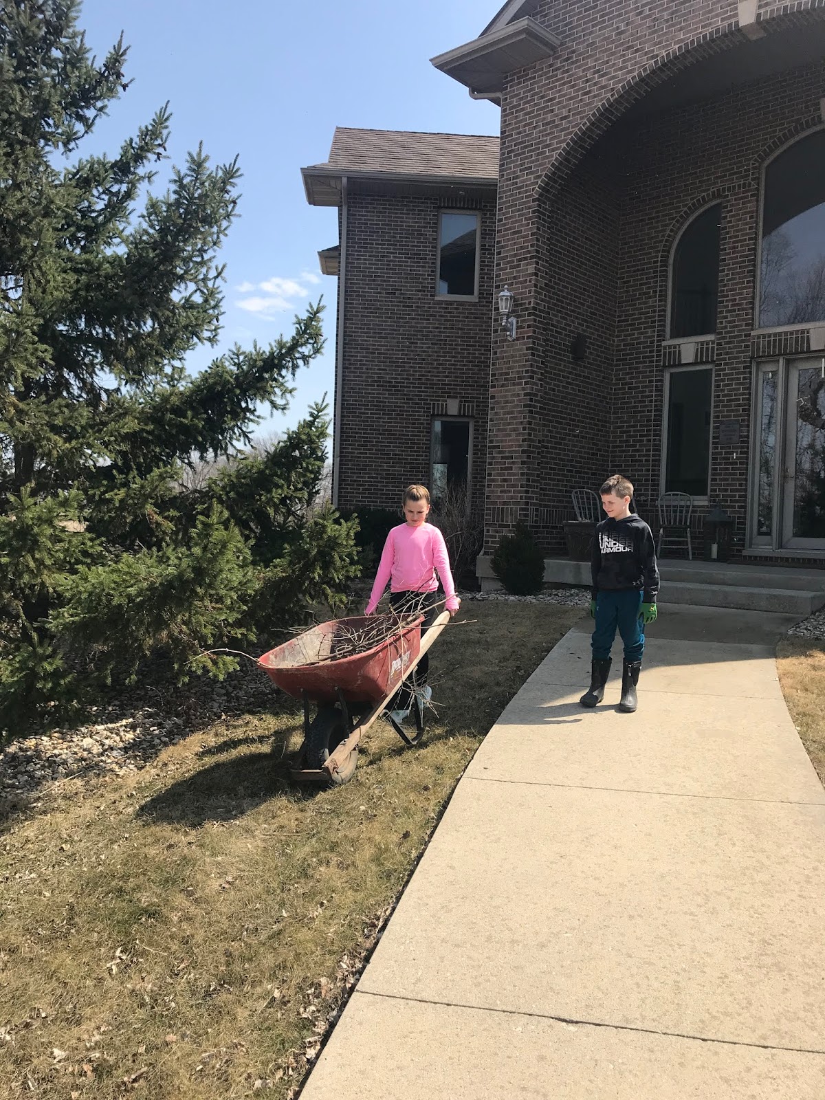While Grace was at her party and Tess was napping, Claire and Max took advantage of the nice weather and helped Ben with yard work.