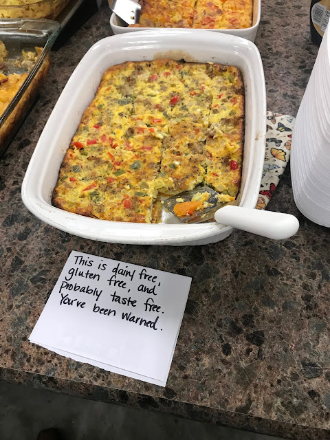 We had brunch at church on Sunday. My friend and I can’t do dairy, and don’t do well with gluten- so I told her I’d make a casserole that we could enjoy. But I felt like I needed to be honest with other people before they helped themselves to a piece.