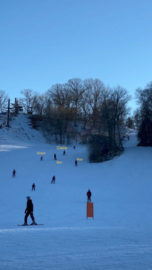 Grace did a couple runs down the bunny slope with her instructor and he was like, “Yeah mom, she’s ready for the big hills.” And off they went. She LOVED it.