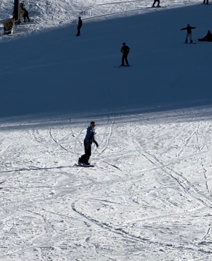 Claire’s our snowboarder and prefers to take her time down the mountain.